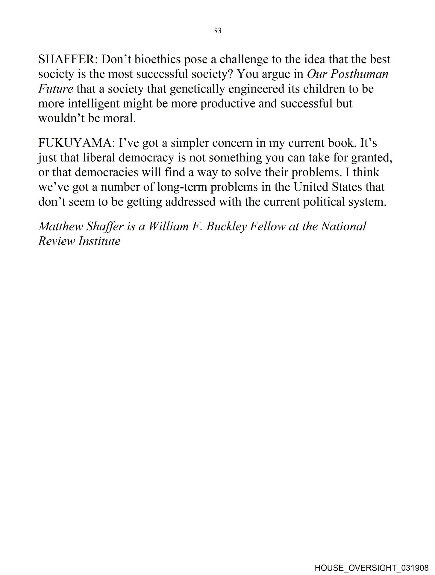 - HOUSE_OVERSIGHT_031876… amicle 6. | NATIONAL REVIEW Interview with – Francis Fukuyama Matthew Shaffer Anicle7- | Project Syndicate “eee Peter Singer HOUSE_OVERSIGHT_031876