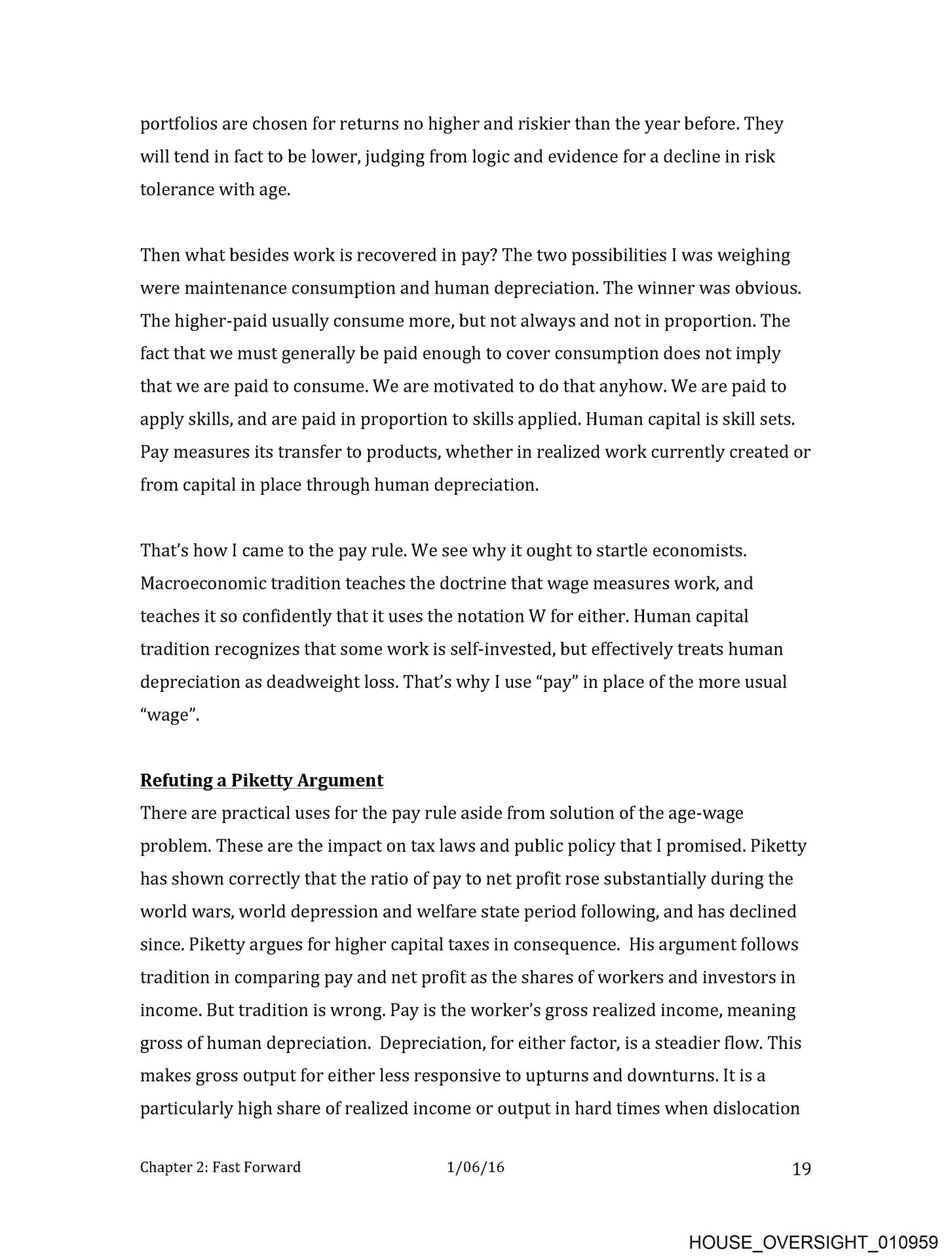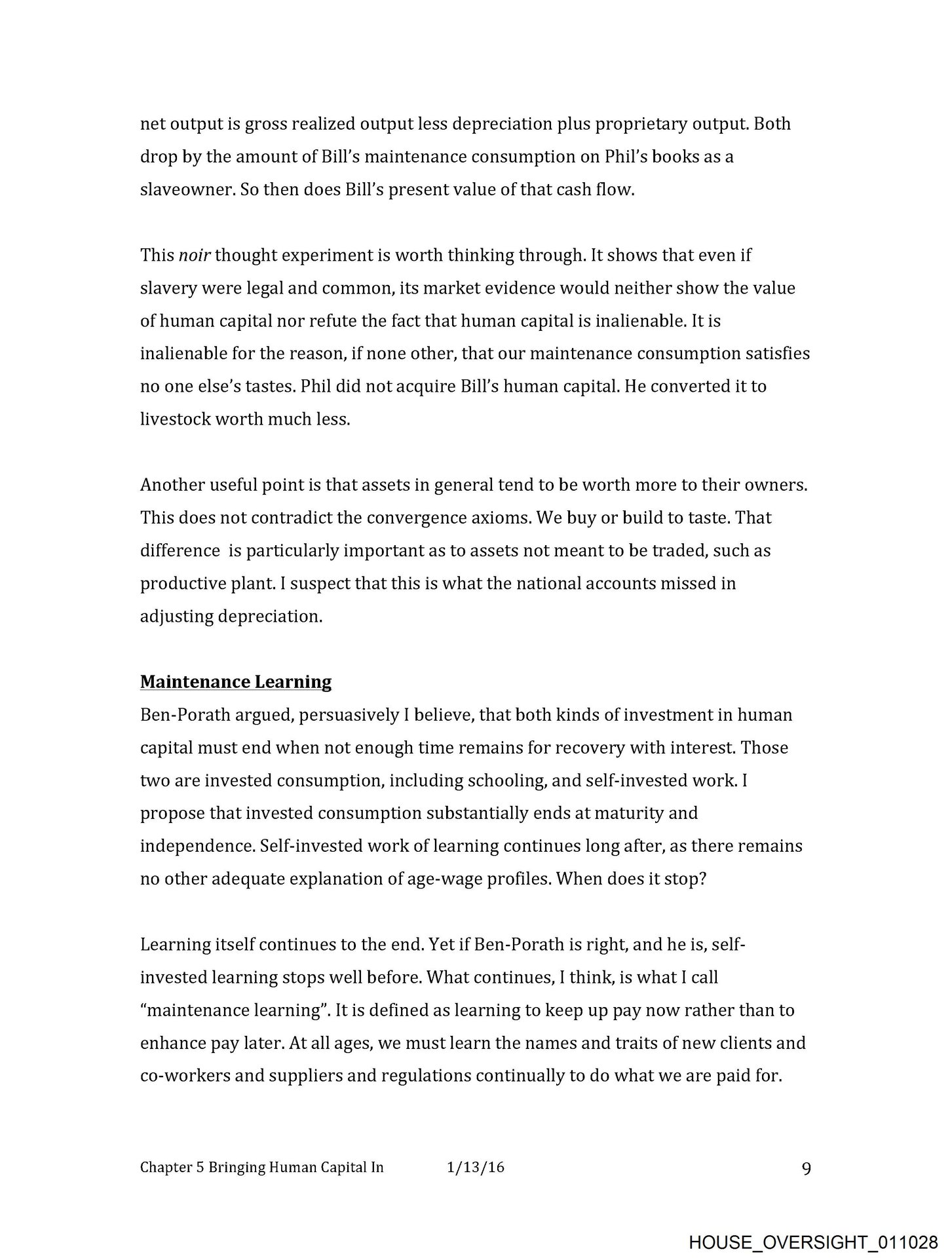 - HOUSE_OVERSIGHT_010959… in income. But tradition is wrong. Pay is the worker’s gross realized income, meaning gross of human depreciation. Depreciation, for either …