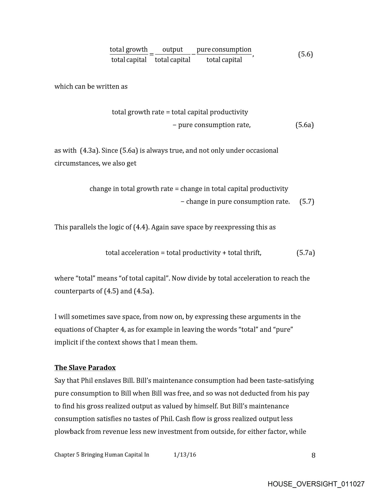 - HOUSE_OVERSIGHT_011043… capital, give earned revenue = pay – prior claims = gross realized work = realized work + recovered human depreciation. (6.15) …