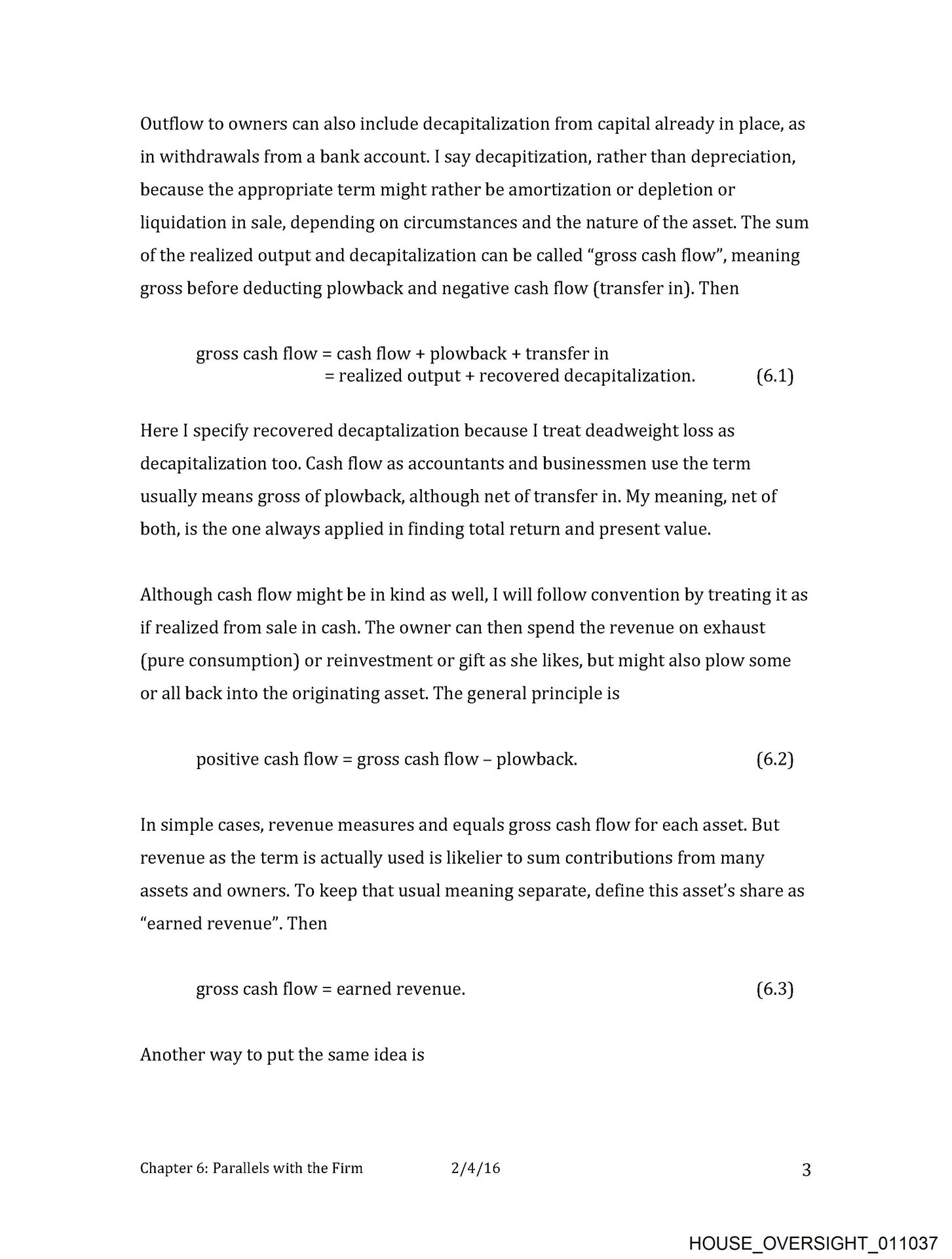 - HOUSE_OVERSIGHT_011037… sum of the realized output and decapitalization can be called “gross cash flow”, meaning gross before deducting plowback and negative cash …