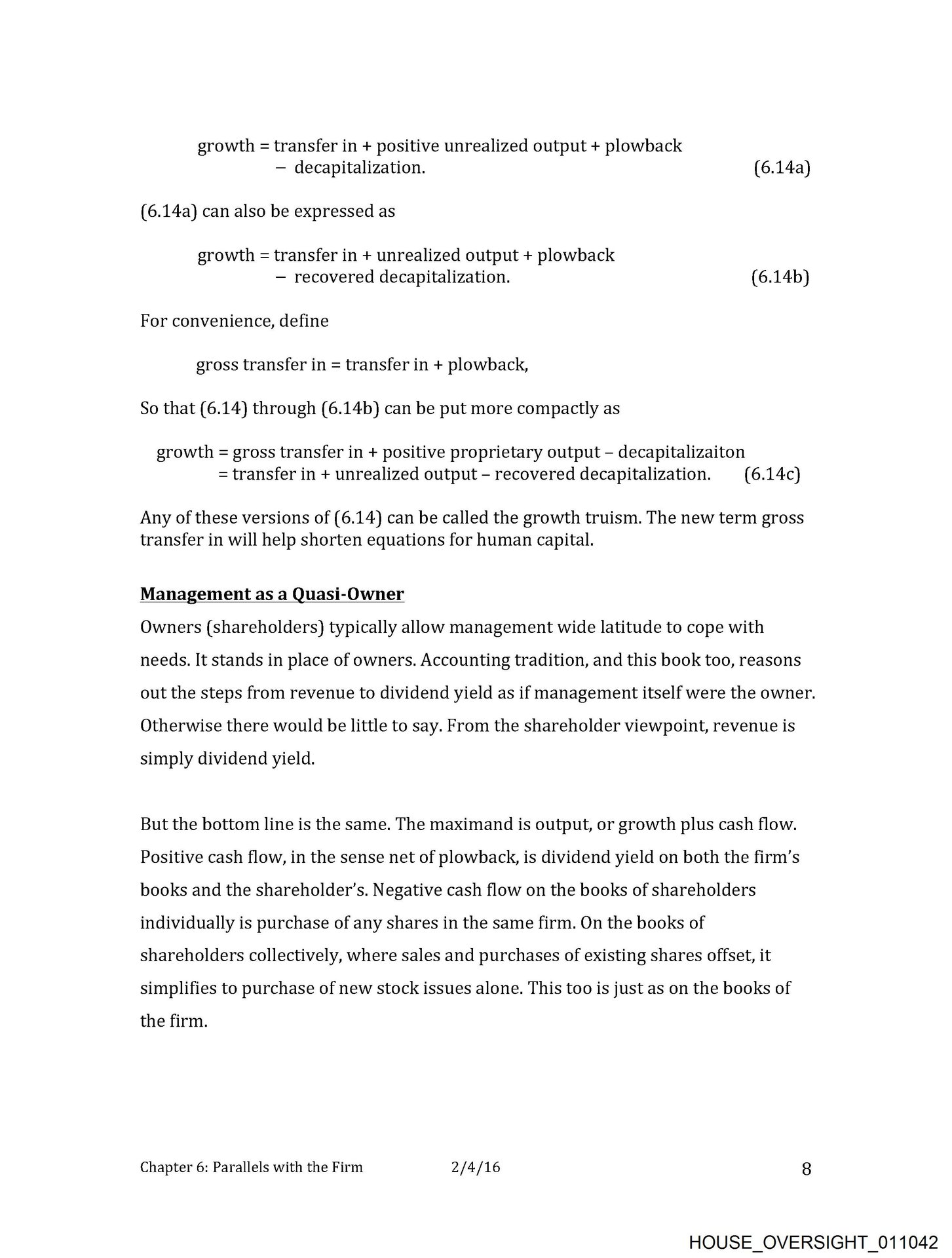 - HOUSE_OVERSIGHT_011042… output + plowback — recovered decapitalization. (6.14b) For convenience, define gross transfer in = transfer in + plowback, So that (6.14) …