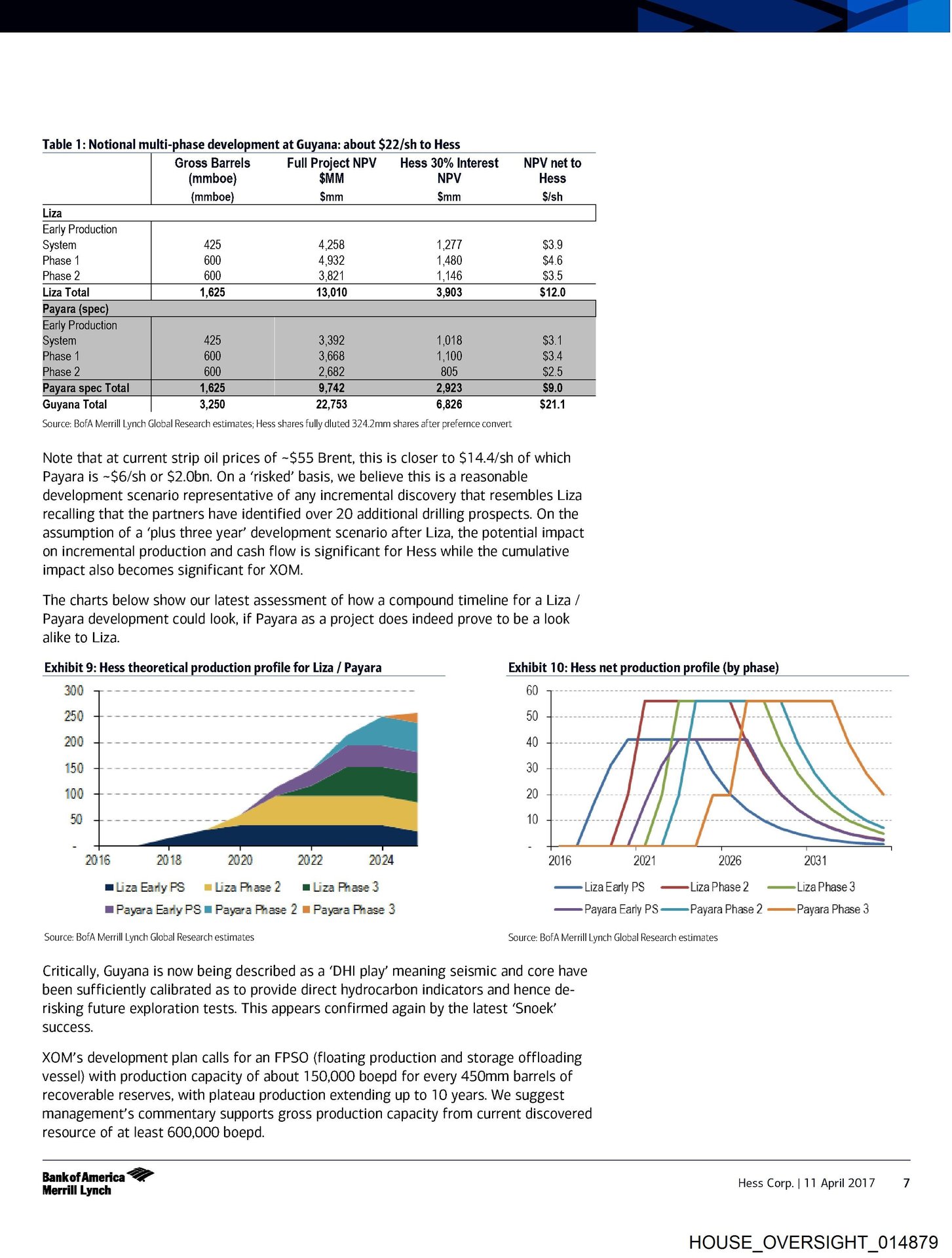 - HOUSE_OVERSIGHT_014879… multi-phase development at Guyana: about $22/sh to Hess = —_ Gross Barrels Full Project NPV = Hess 30% Interest © NPV …