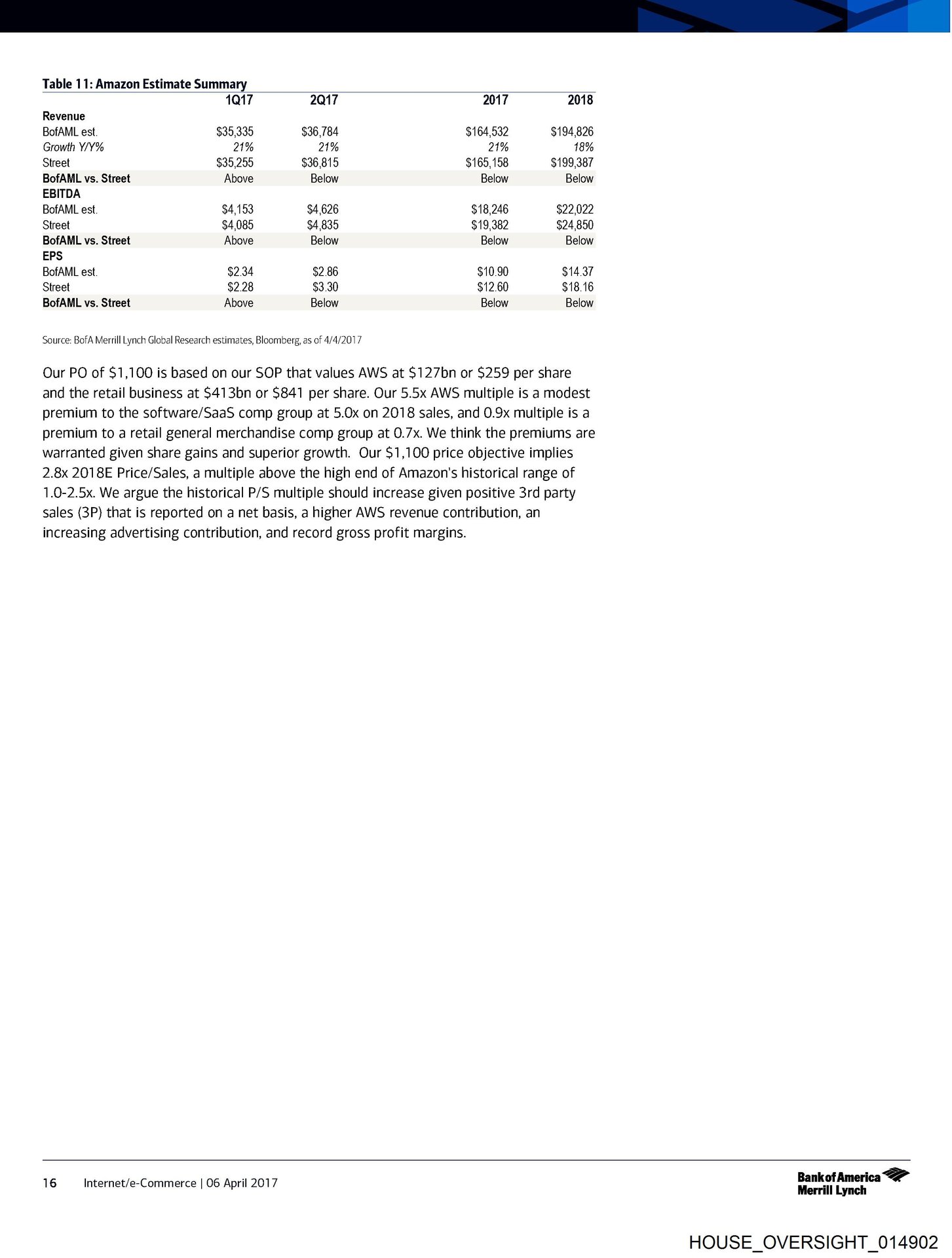- HOUSE_OVERSIGHT_014902… higher AWS revenue contribution, an increasing advertising contribution, and record gross profit margins. 16 Internet/e-Commerce | 06 April 2017 Ea kot …