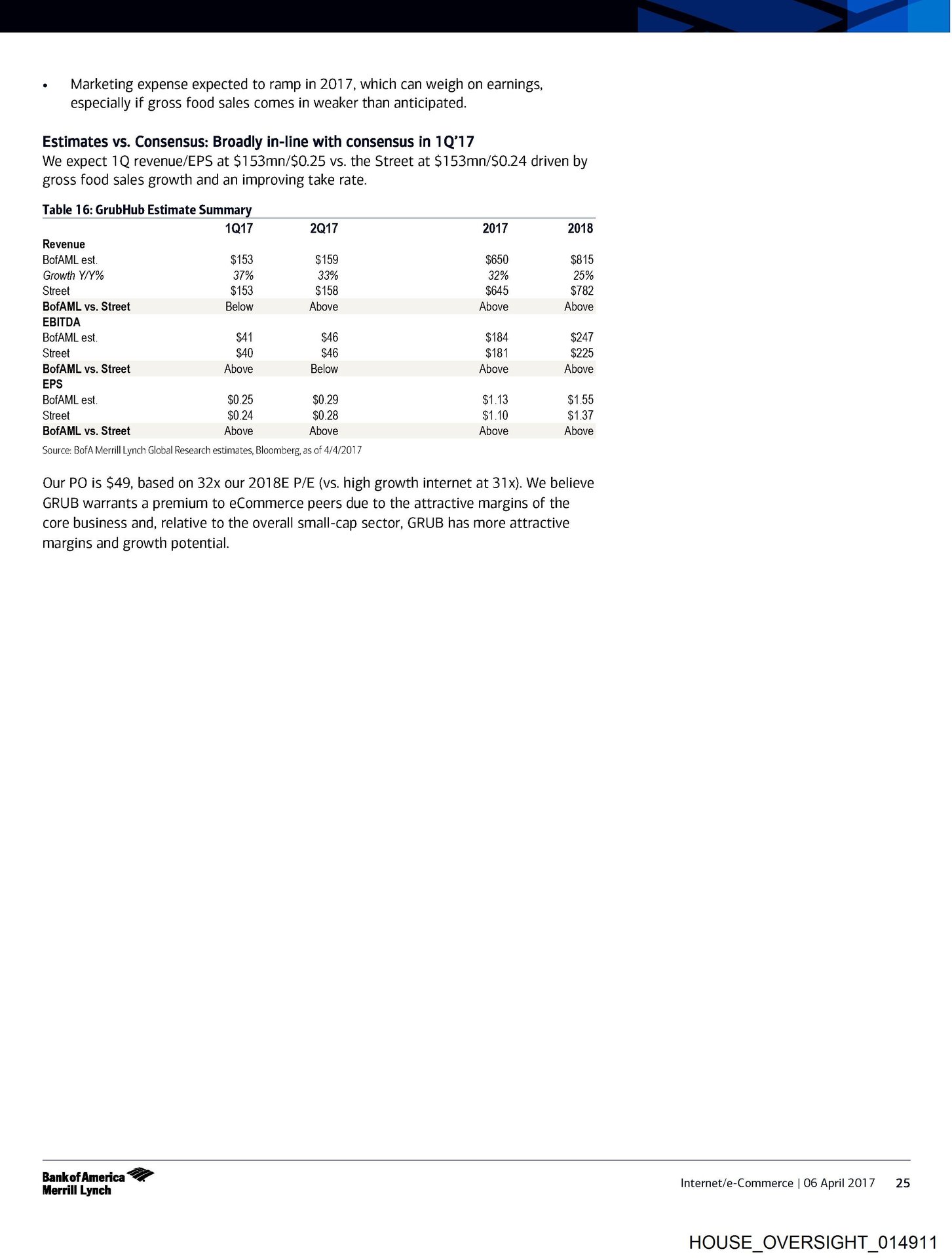 - HOUSE_OVERSIGHT_014911… ramp in 2017, which can weigh on earnings, especially if gross food sales comes in weaker than anticipated. Estimates vs. Consensus: …