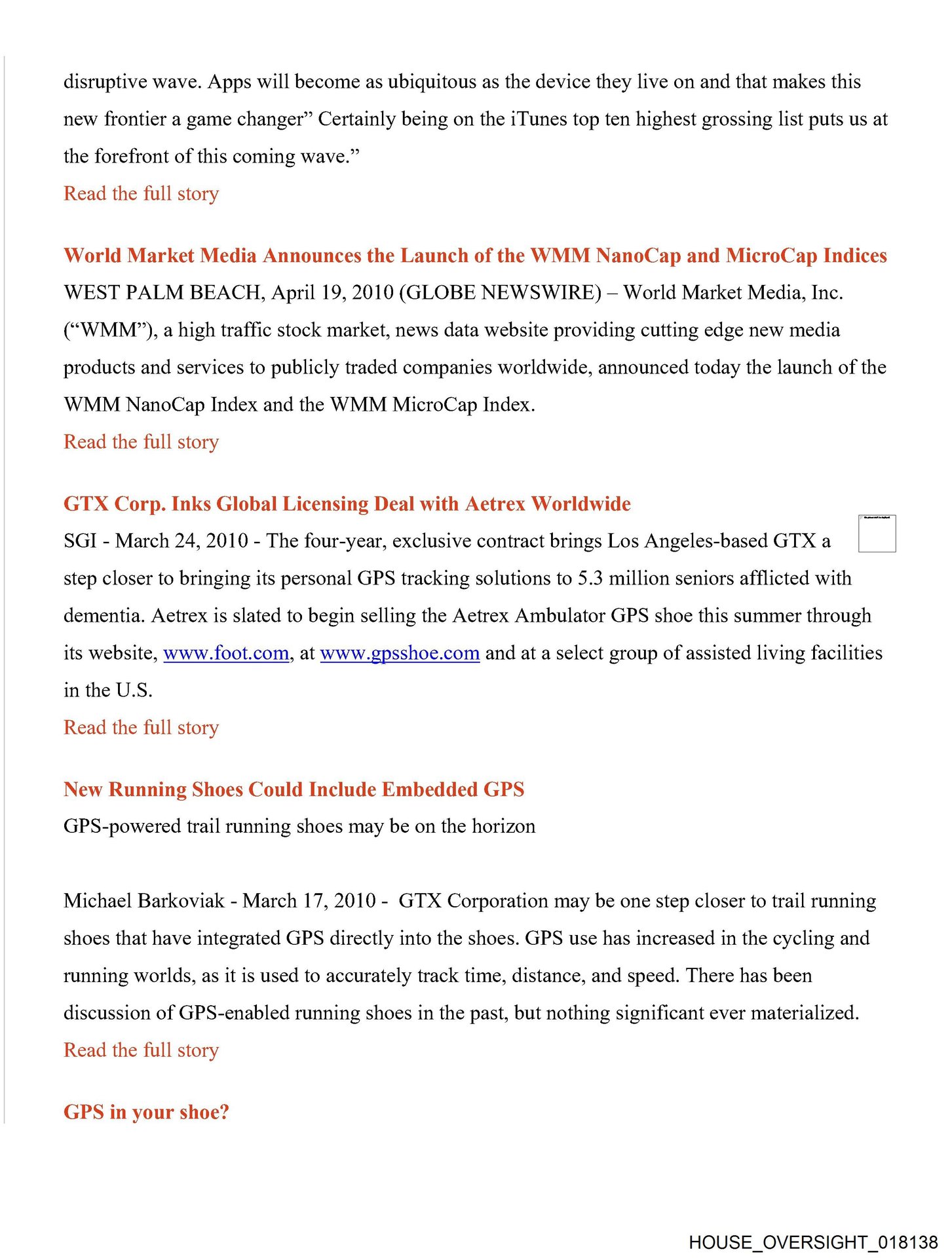 - HOUSE_OVERSIGHT_032087… GPS GPS-powered trail running shoes may be on the horizon Michael Barkoviak – March 17, 2010 – GTX Corporation may be …