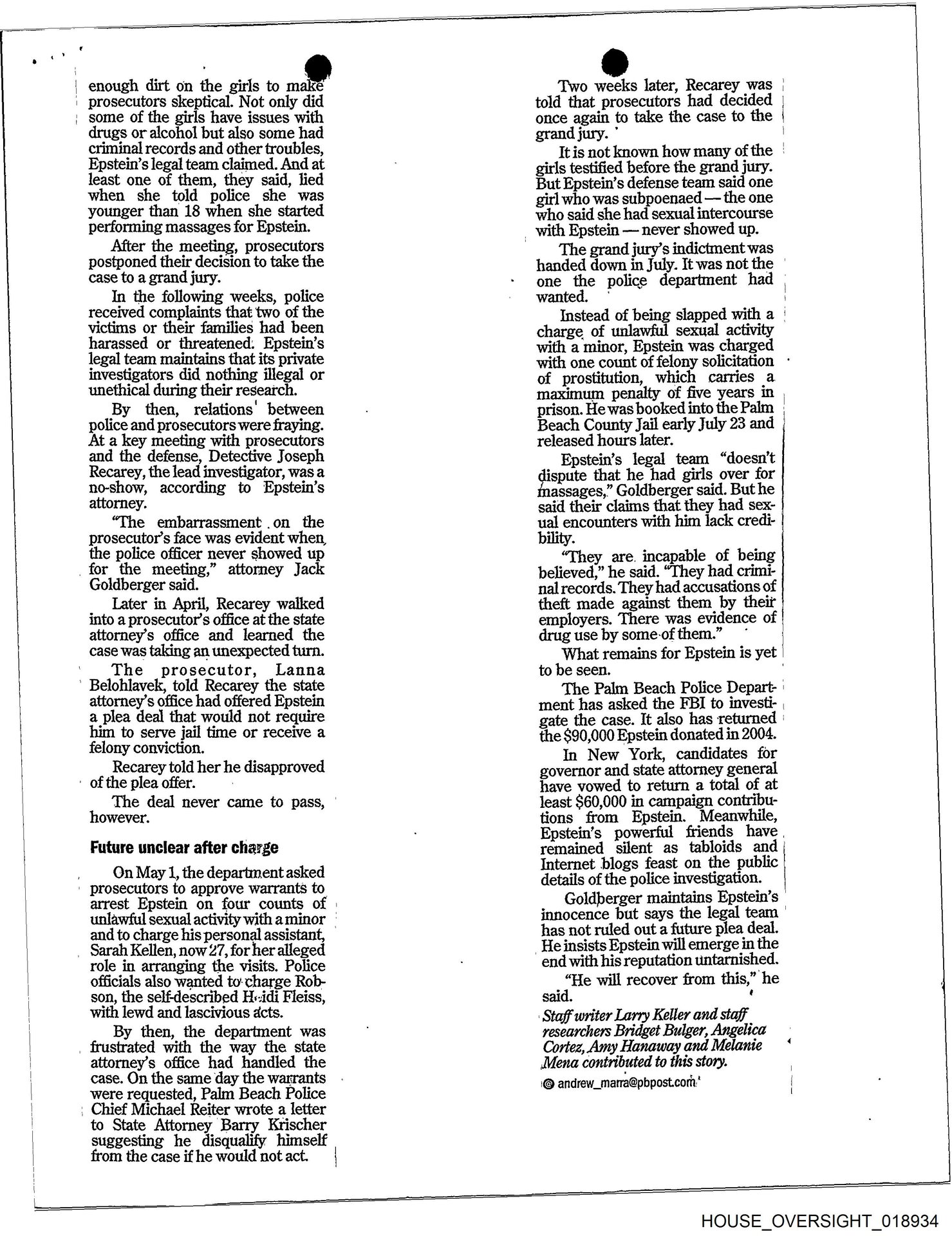 - HOUSE_OVERSIGHT_016453… their cause remain angry over what they regard as a gross injustice, while Epstein's employees and those who engineered his non-prosecution …