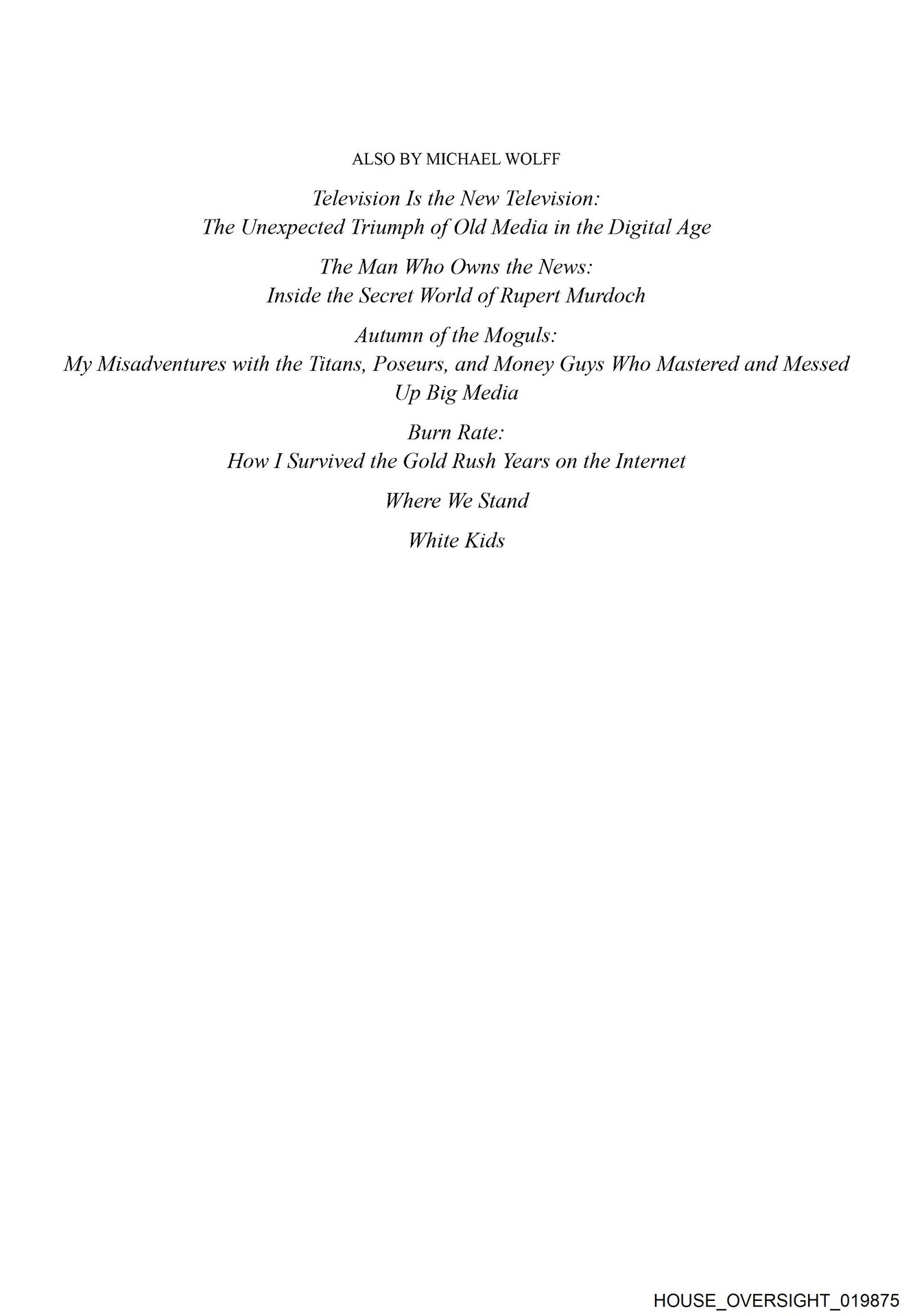 - HOUSE_OVERSIGHT_030318From: Michael Wolff Sent: 12/15/2018 5:03:19 PM To: Jeffrey Epstein [jeeyacation@gmail.com] CC: …
