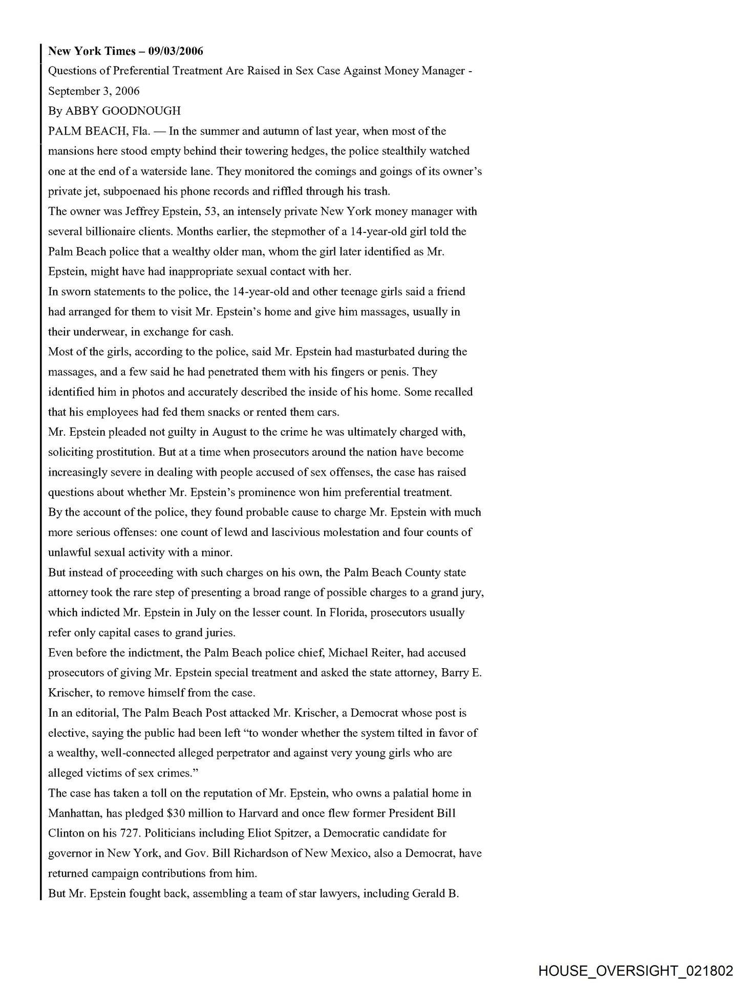 - HOUSE_OVERSIGHT_030307… juries. Even before the indictment, the Palm Beach police chief, Michael Reiter, had accused prosecutors of giving Mr. Epstein special treatment …