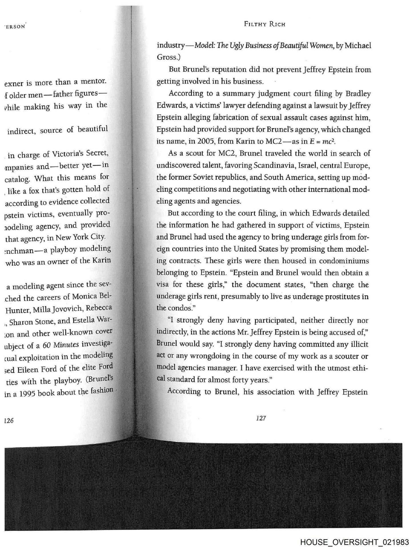 - HOUSE_OVERSIGHT_011931… 60 Minutes broadcast many years ago, is quoted in Michael Gross’ book about the modeling industry, Model: The Ugh: Business of …
