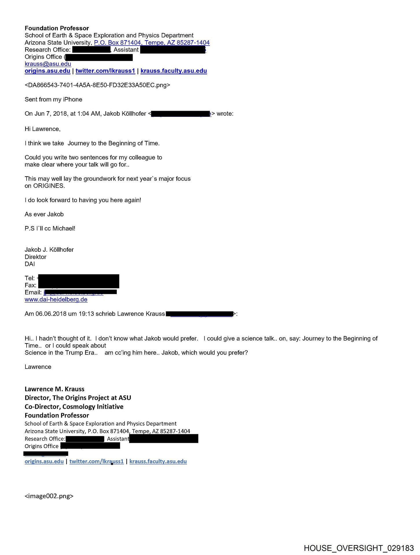 - HOUSE_OVERSIGHT_029189… I krauss.faculty.asu.edu <image002.png> On Jun 6, 2018, at 2:15 AM, Michael Braun <i wrote: Dear Lawrence Kraus, my name is Michael …