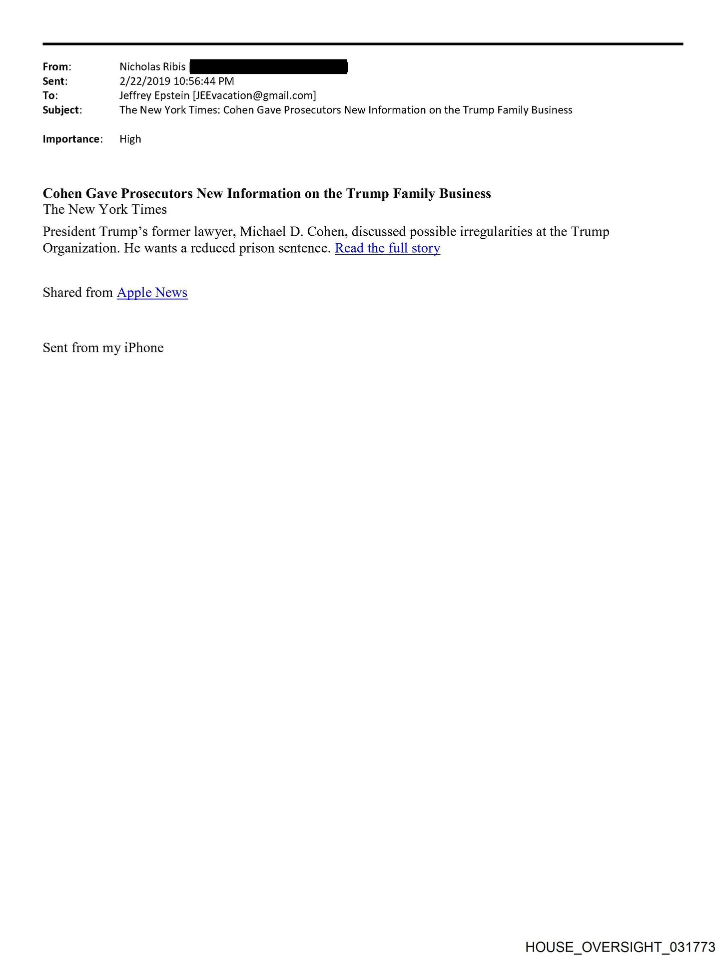 - HOUSE_OVERSIGHT_033280… this is a very good article in case you missed https://www.newyorker.cominews/news-desk/michael- cohen-and-the-end-stage-of-the-trump-presidency Sent from my Iphone HOUSE OVERSIGHT 033280