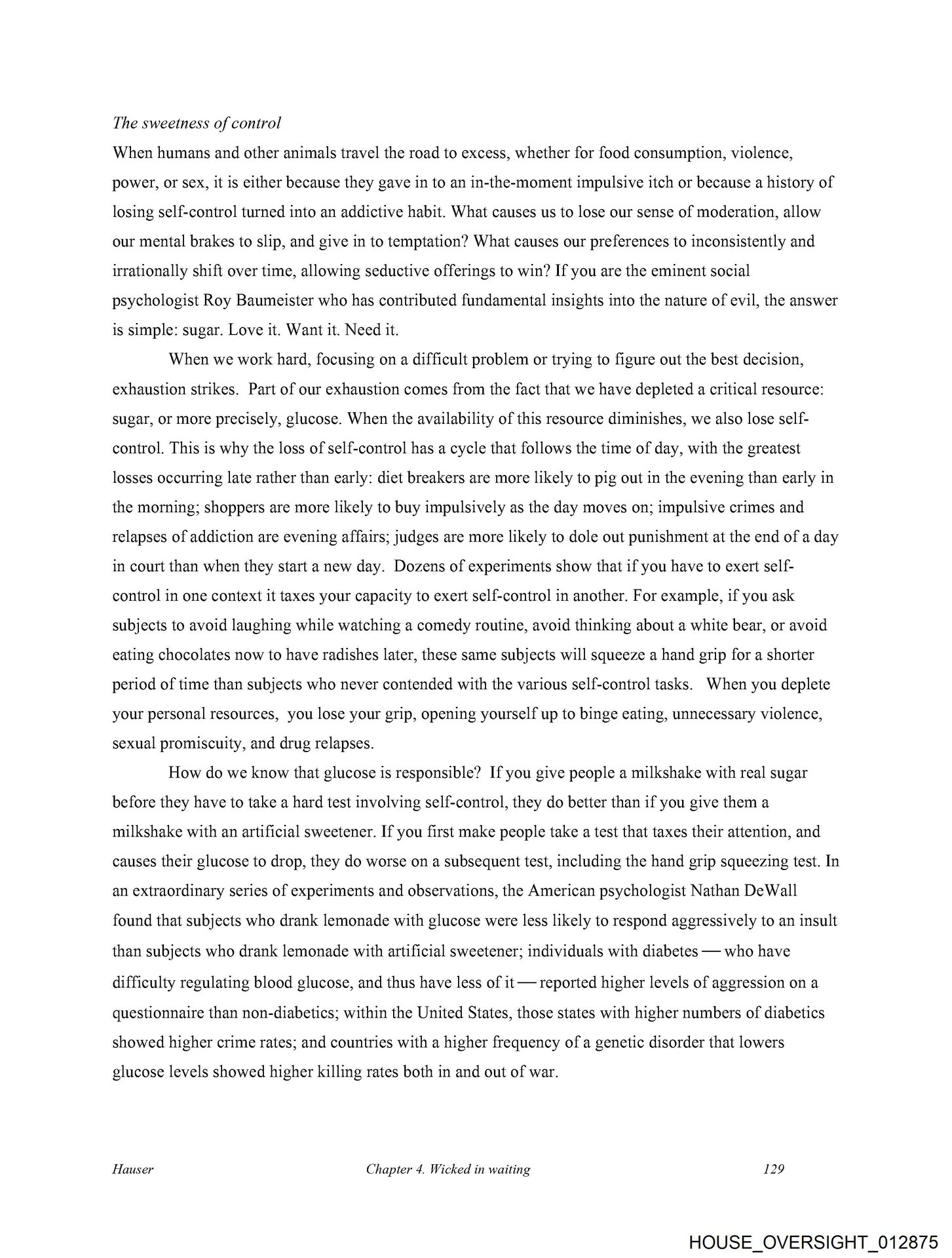 - HOUSE_OVERSIGHT_012875… an extraordinary series of experiments and observations, the American psychologist Nathan DeWall found that subjects who drank lemonade with glucose were …
