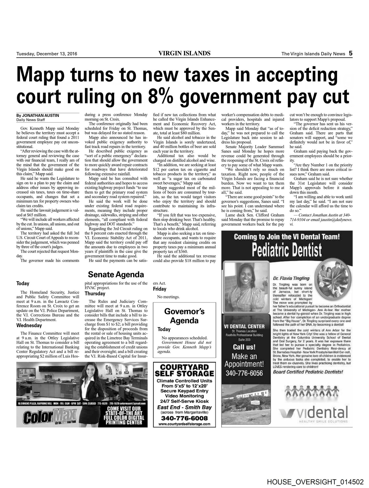 - HOUSE_OVERSIGHT_014502… 2016 VIRGIN ISLANDS The Virgin Islands Daily News 5 By JONATHANAUSTIN during a press conference Monday _ fied if new tax …