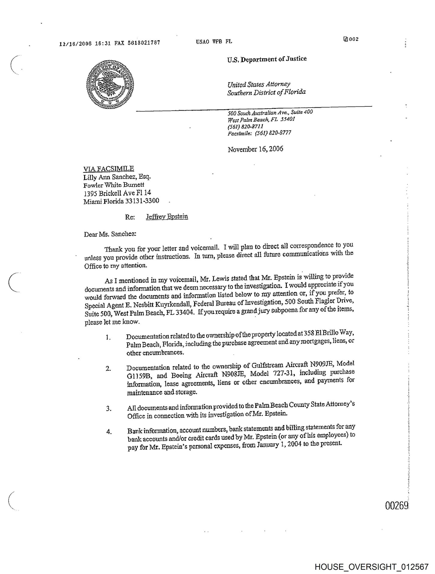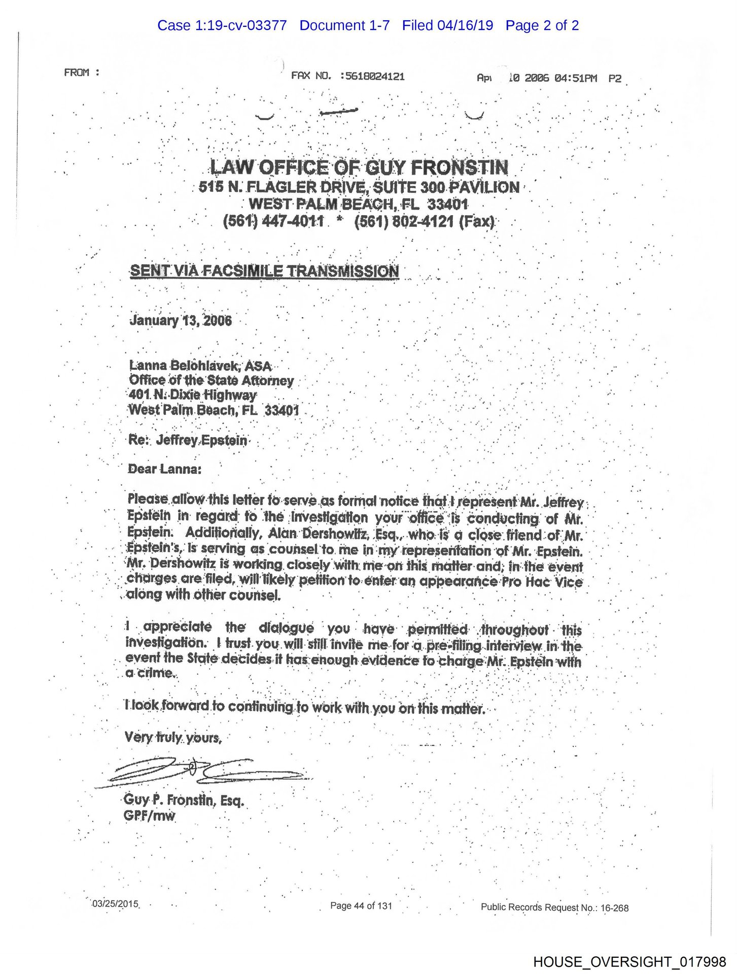 - HOUSE_OVERSIGHT_017998… |” | _. / 616 NUFLAGLER DRIVE, SUITE 300.-PAVILION eee Jones. (564) 447-4017. * (561) 802-4121 (Faxy : ’. SENT-VIA FACSIMILE …