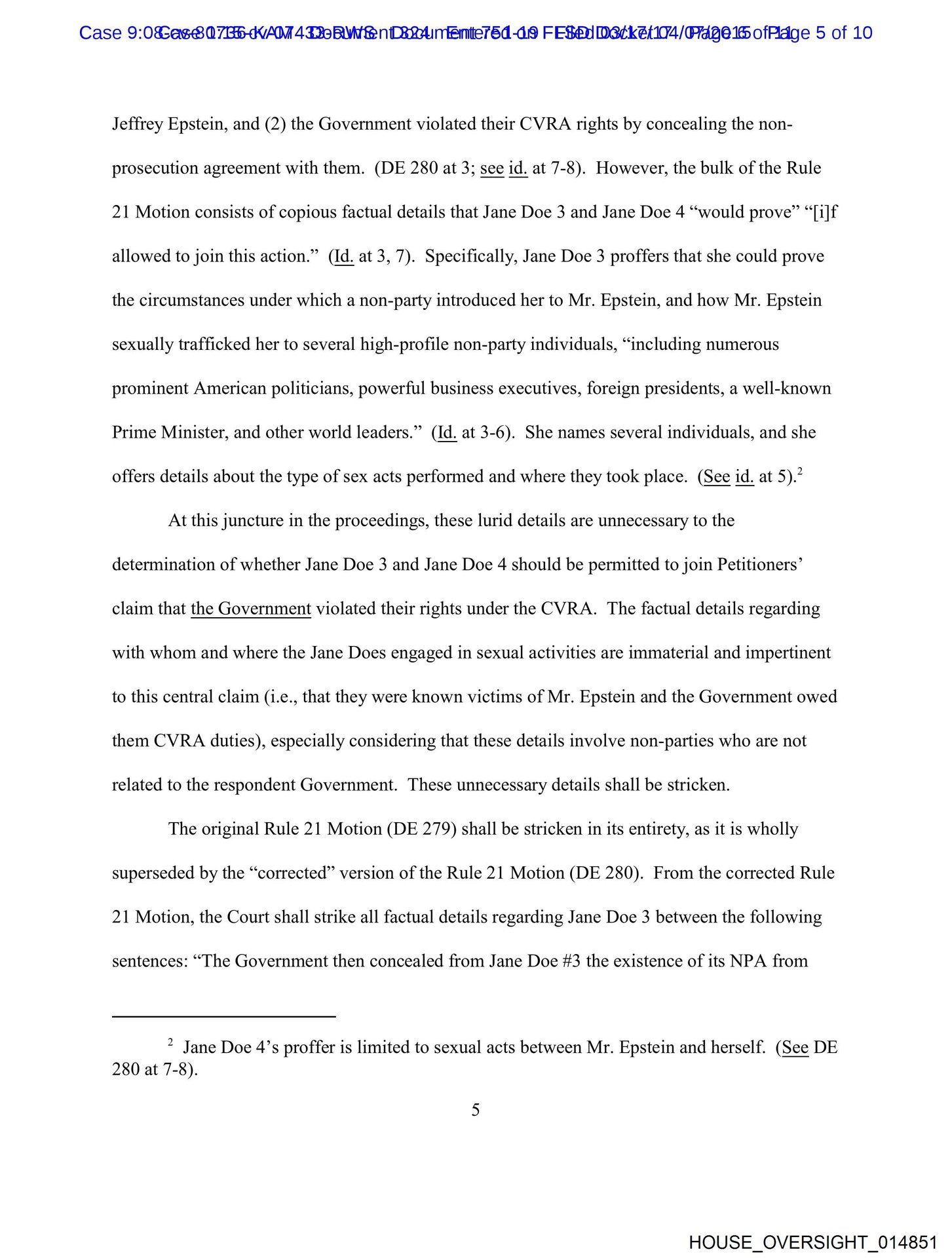 - HOUSE_OVERSIGHT_017705… court in the district in which the crime occurred." Judge Jones said the Crime Victims Rights Act affords victims certain rights …