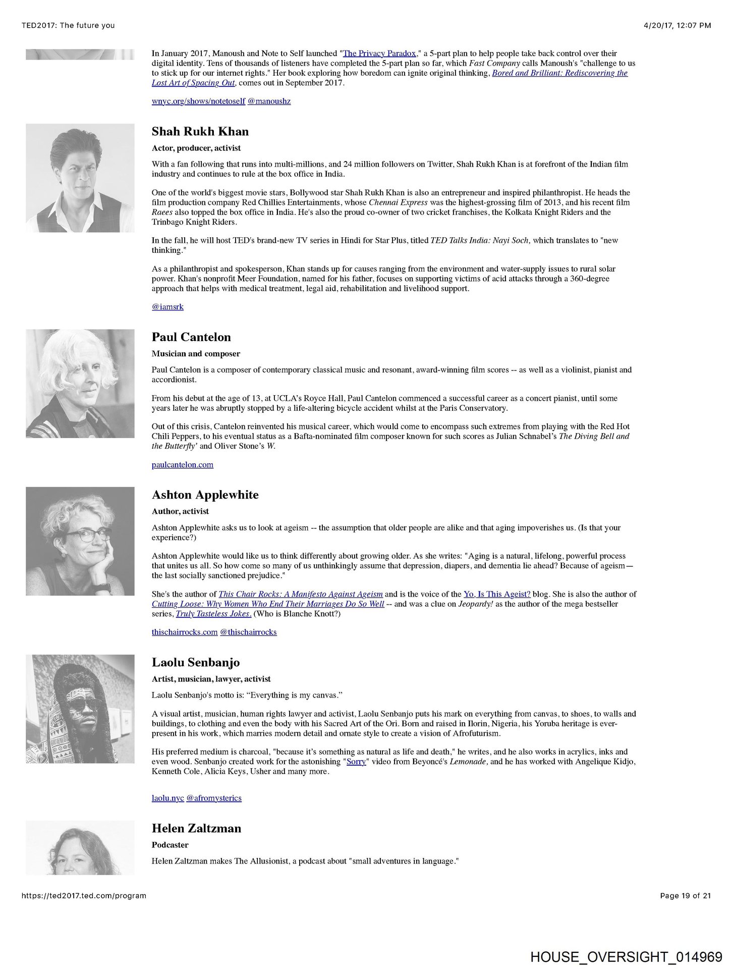 - HOUSE_OVERSIGHT_017526… GEHRY MATT GROENING HERBIE HANCOCK DANNY HILLIS BJARKE INGELS QUINCY JONES MARY JORDAN JON KAMEN JEFFREY KATZENBERG NORMAN LEAR YO-YO MA …