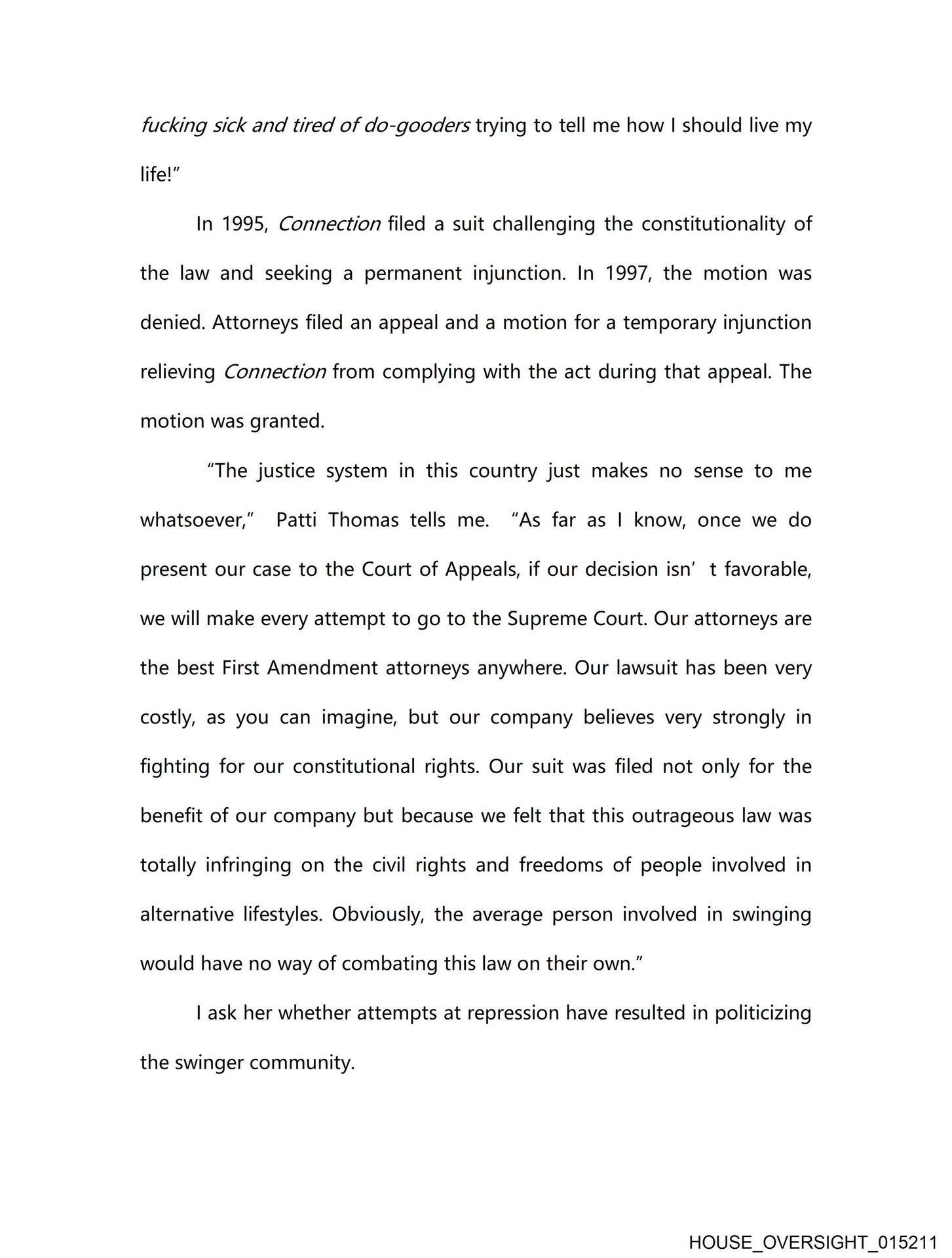 - HOUSE_OVERSIGHT_015142… while | was watching television—Larry King Live—and, once again, Paula Jones was the guest. At one point she said, “l’ ve …