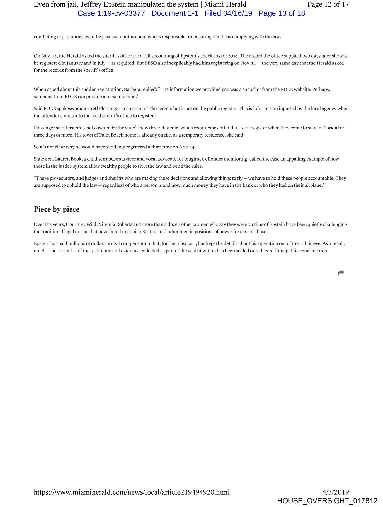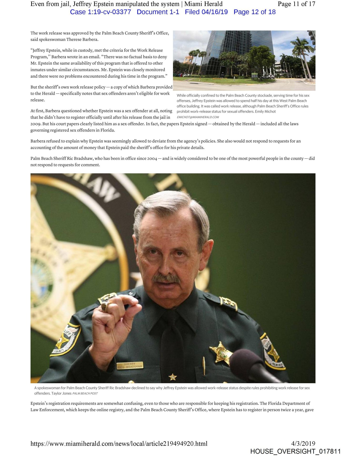 - HOUSE_OVERSIGHT_017811… status despite rules prohibiting work release for sex offenders. Taylor Jones PALM BEACH POST Epstein’s registration requirements are somewhat confusing, even …