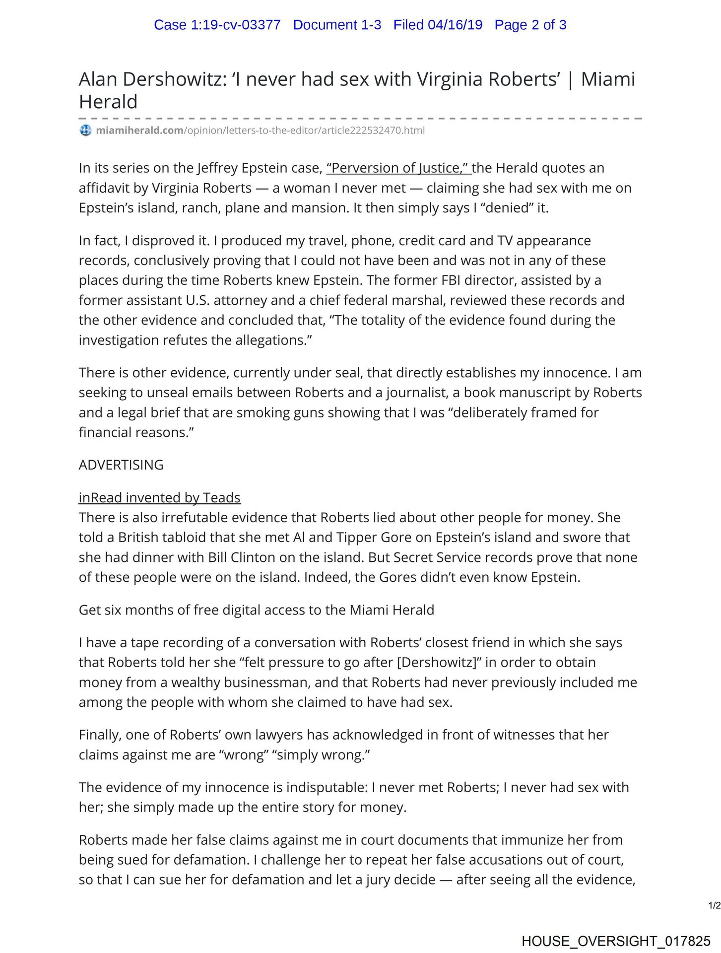 - HOUSE_OVERSIGHT_015015… July 1, 2017 12:49 PM To: Cc: Ainbanklaw Info• I; Patrick M. Regan; wrote: Denyse Sabagh; Michael Baxter; Robert Barnett; Weingarten, …
