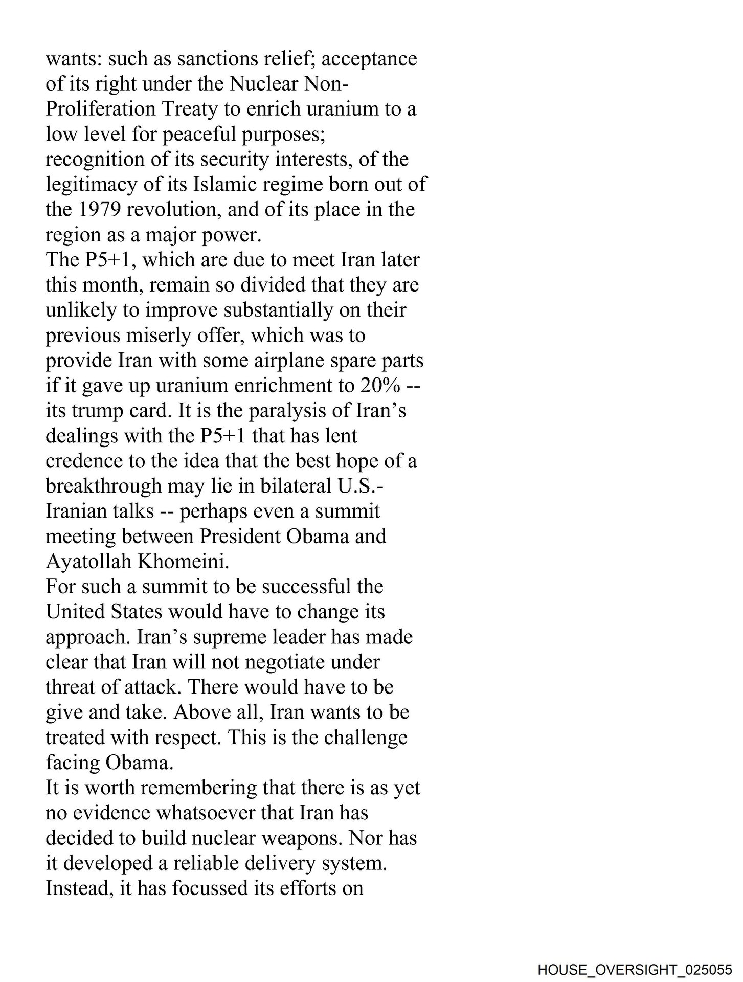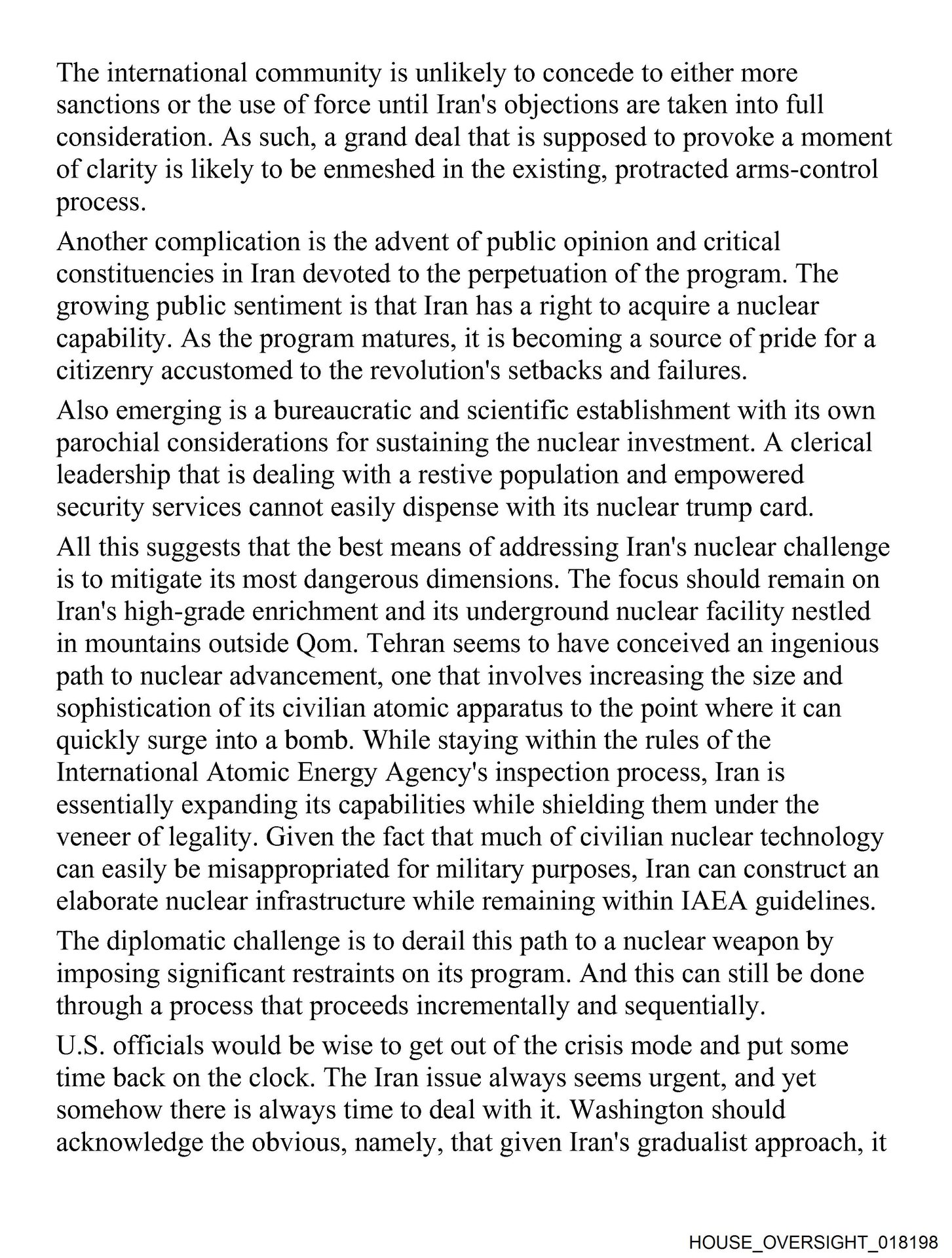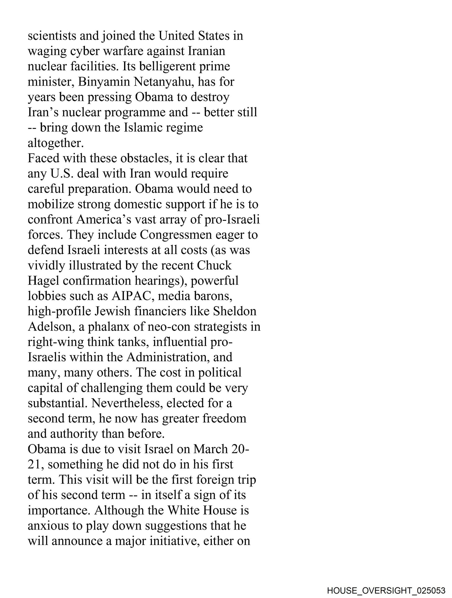 - HOUSE_OVERSIGHT_027099… a nuclear Iran is genuine. It is not a political trick of Prime Minister Benjamin Netanyahu or Defense Minister Ehud Barak. …