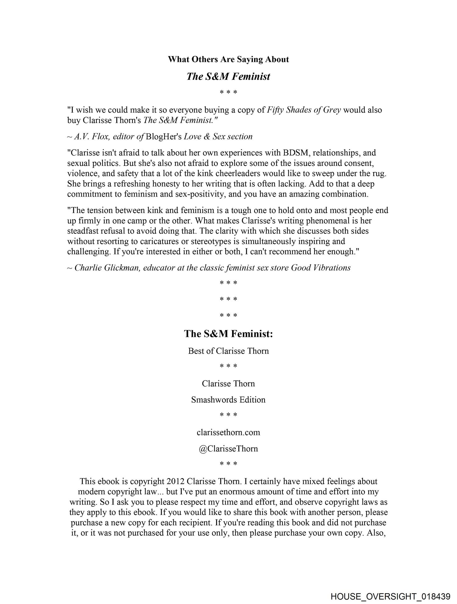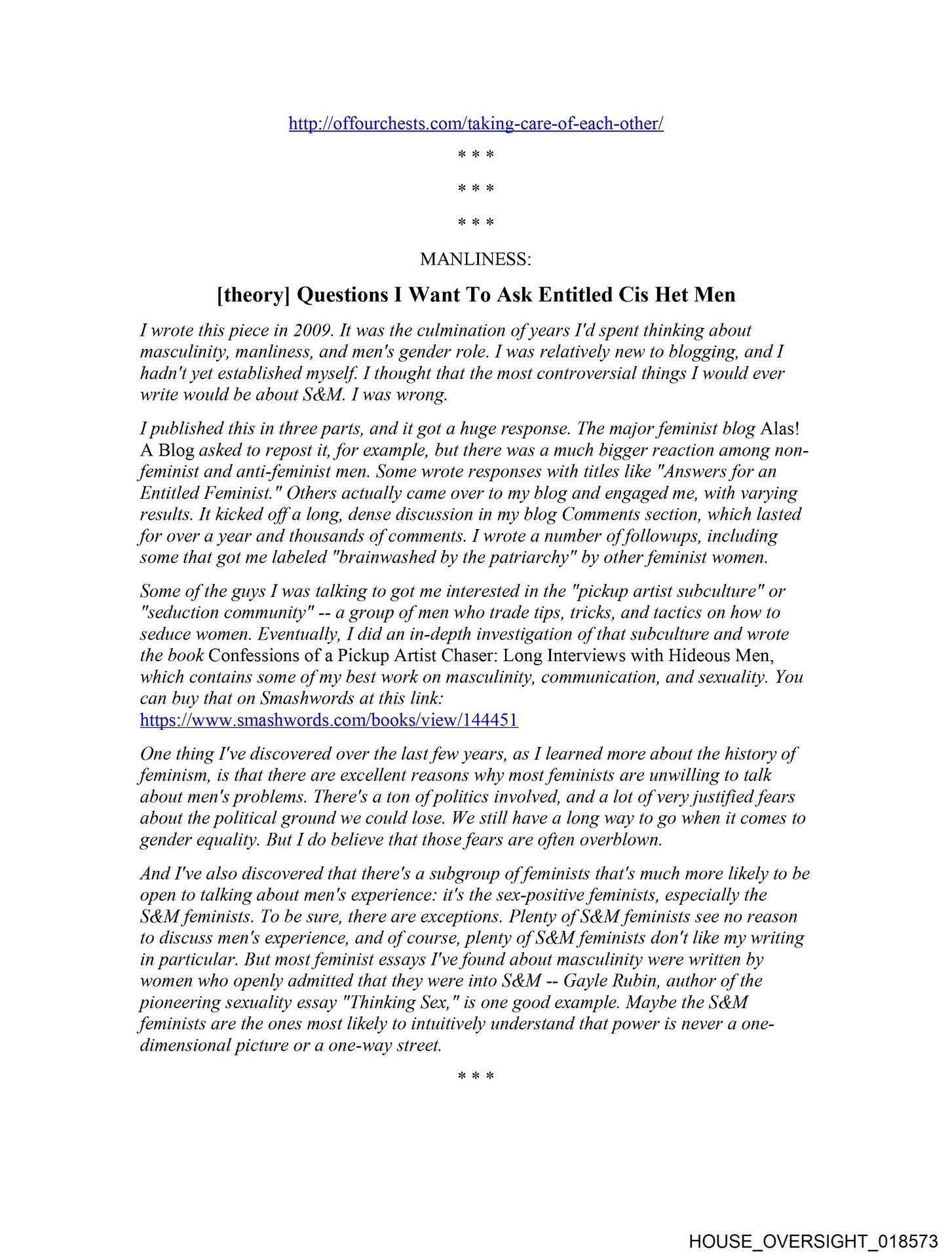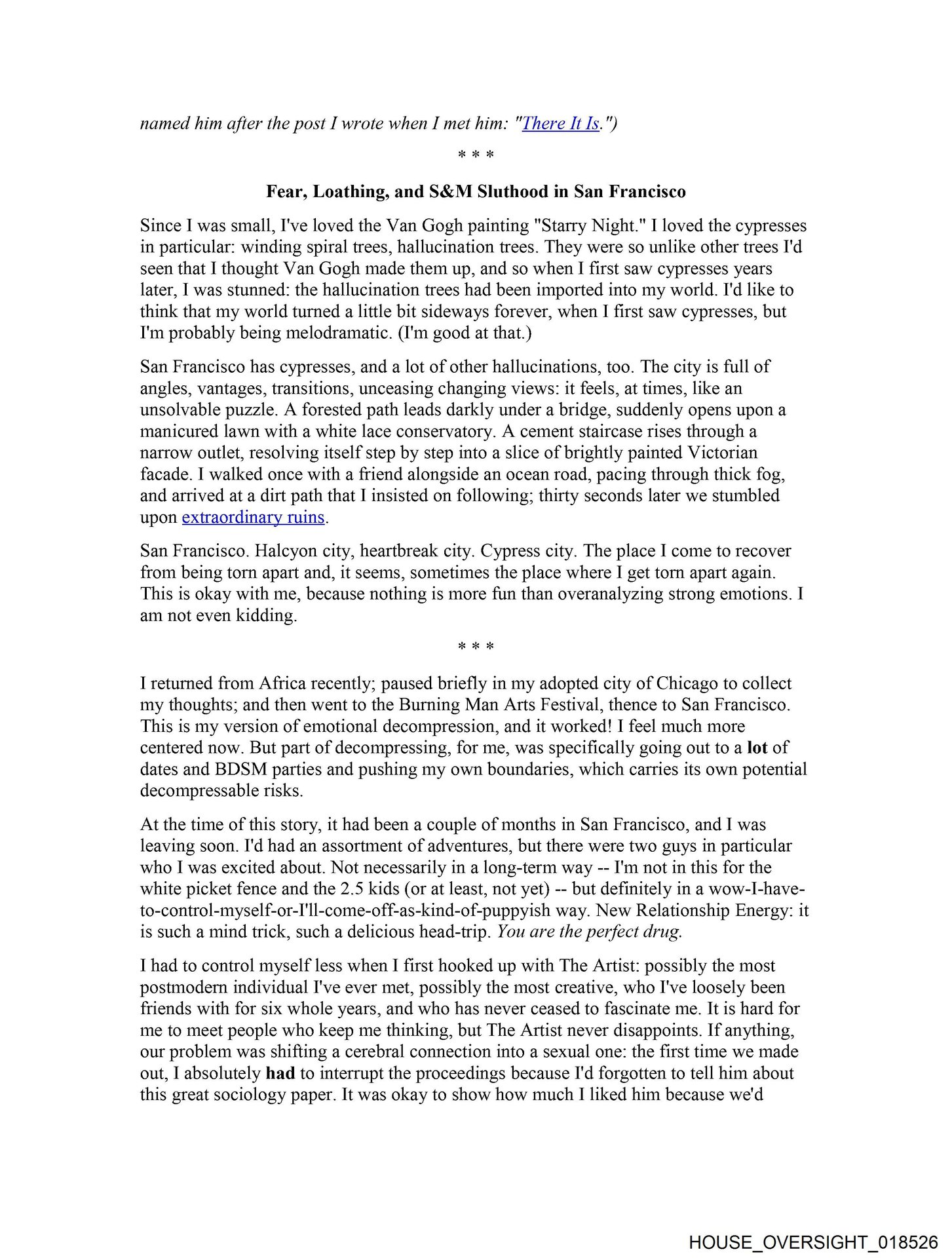 - HOUSE_OVERSIGHT_018691http://bitchyjones. wordpress.com/2009/03/14/bondage-awards-not-actually-sexist-on- purpose/ — [back] 4. The male submissive blogger maymay …