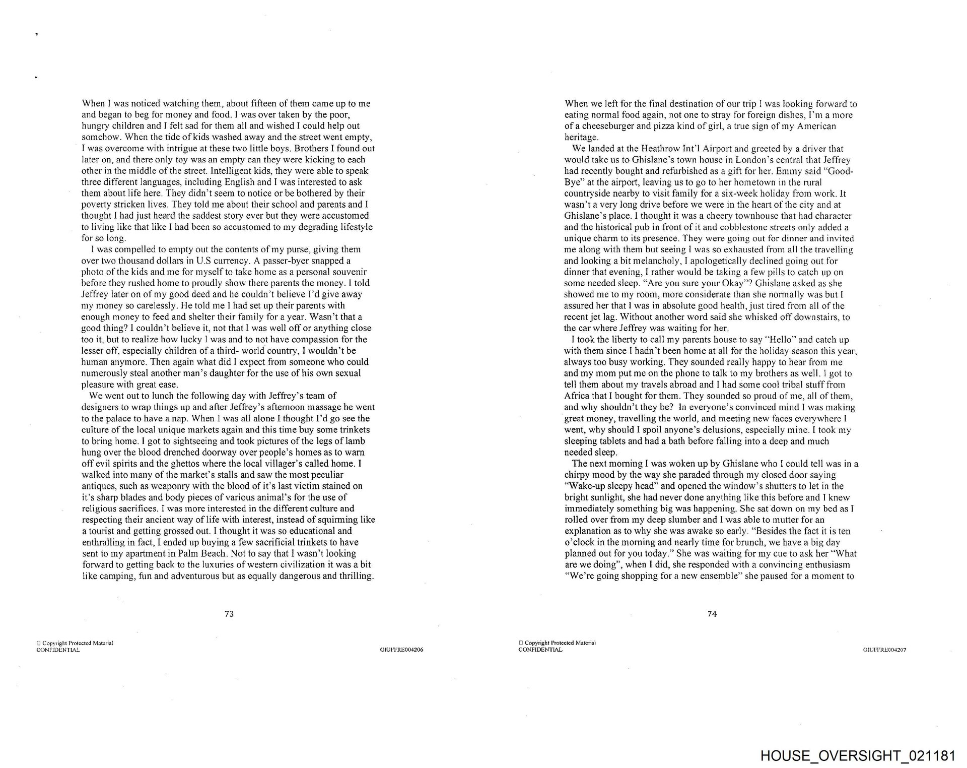 - HOUSE_OVERSIGHT_018176… without a beloved baseball cap on his head. So a trick the family used to keep the man around was to …