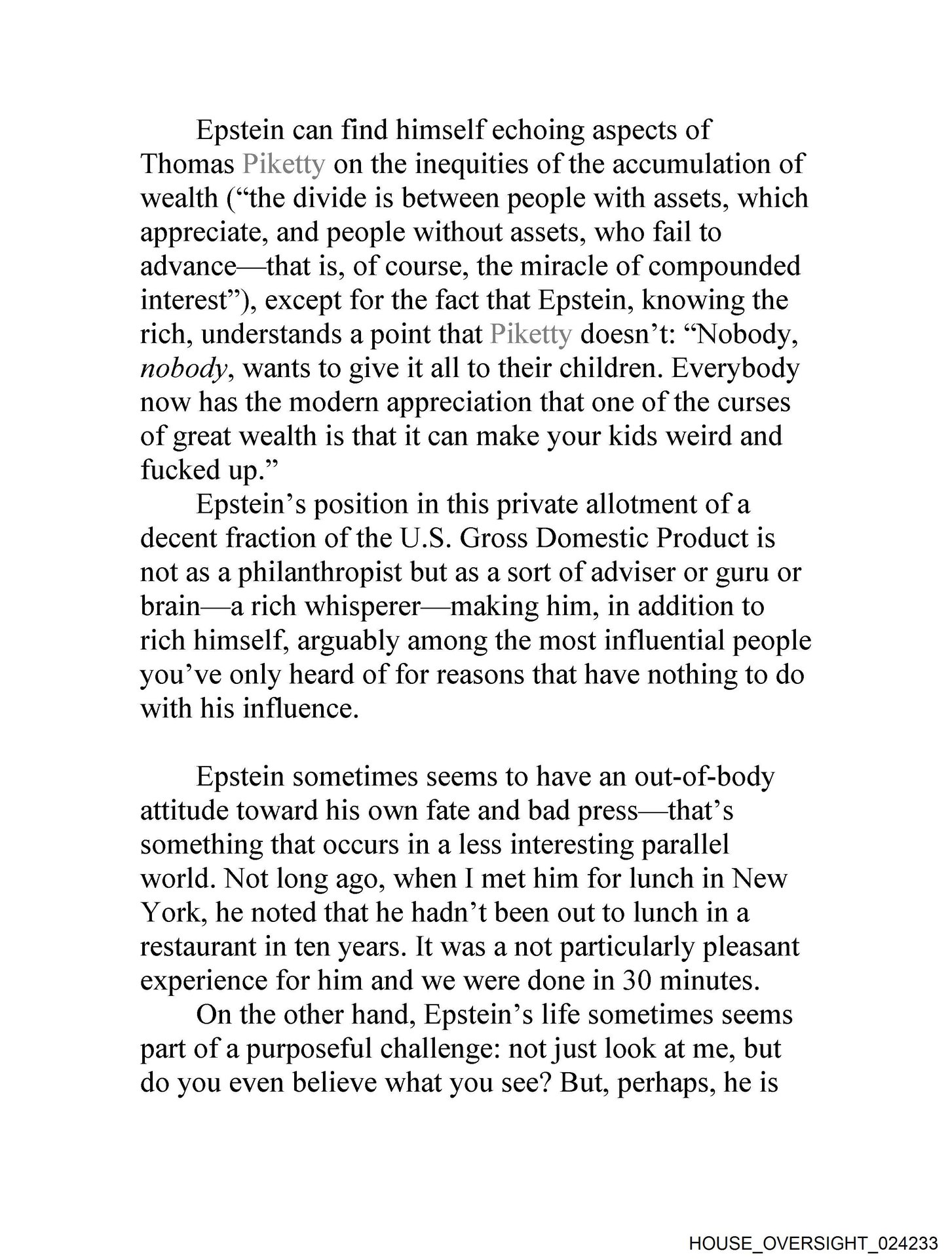 - HOUSE_OVERSIGHT_033158… finance crowd can paddleboard whenever they please. Behind a semicircular brick drive and a lawn as manicured as a putting green …