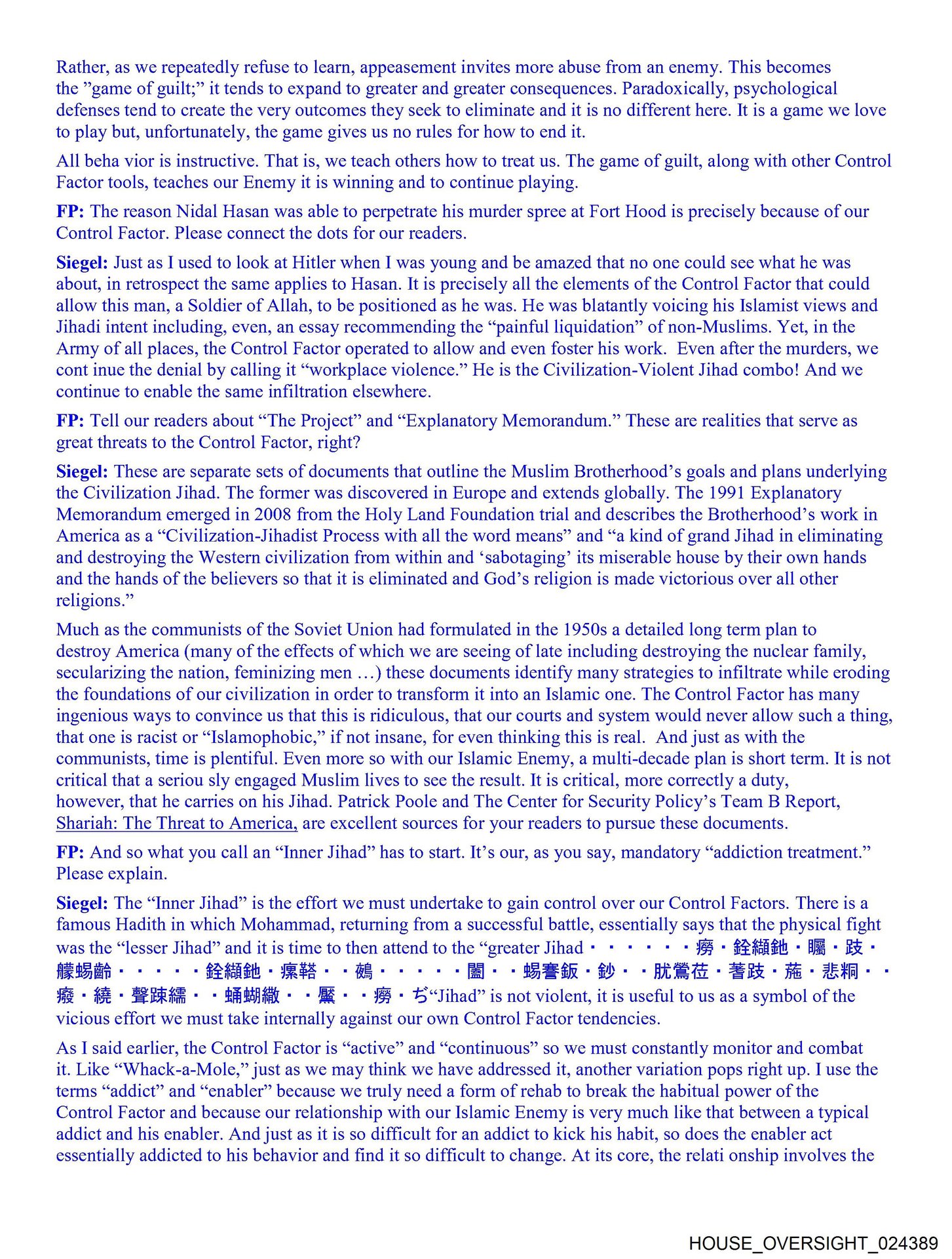 - HOUSE_OVERSIGHT_024425… correctly a duty, however, that he carries on his Jihad. Patrick Poole and The Center for Security Policy's Team B Report, …
