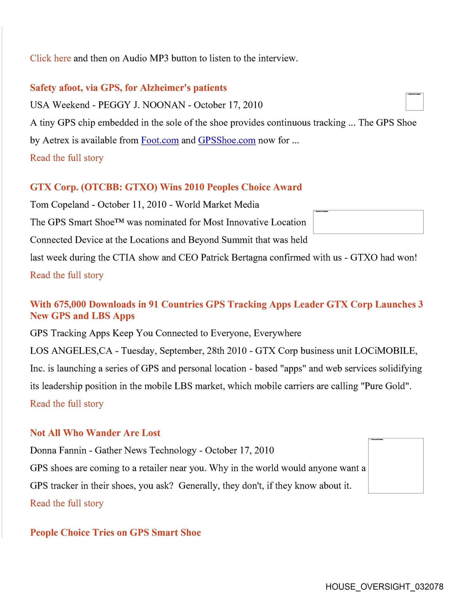 - HOUSE_OVERSIGHT_032076Patrick Bertagna, GTX Corp. – 10/26/2010 – Global Positioning System (GPS) …