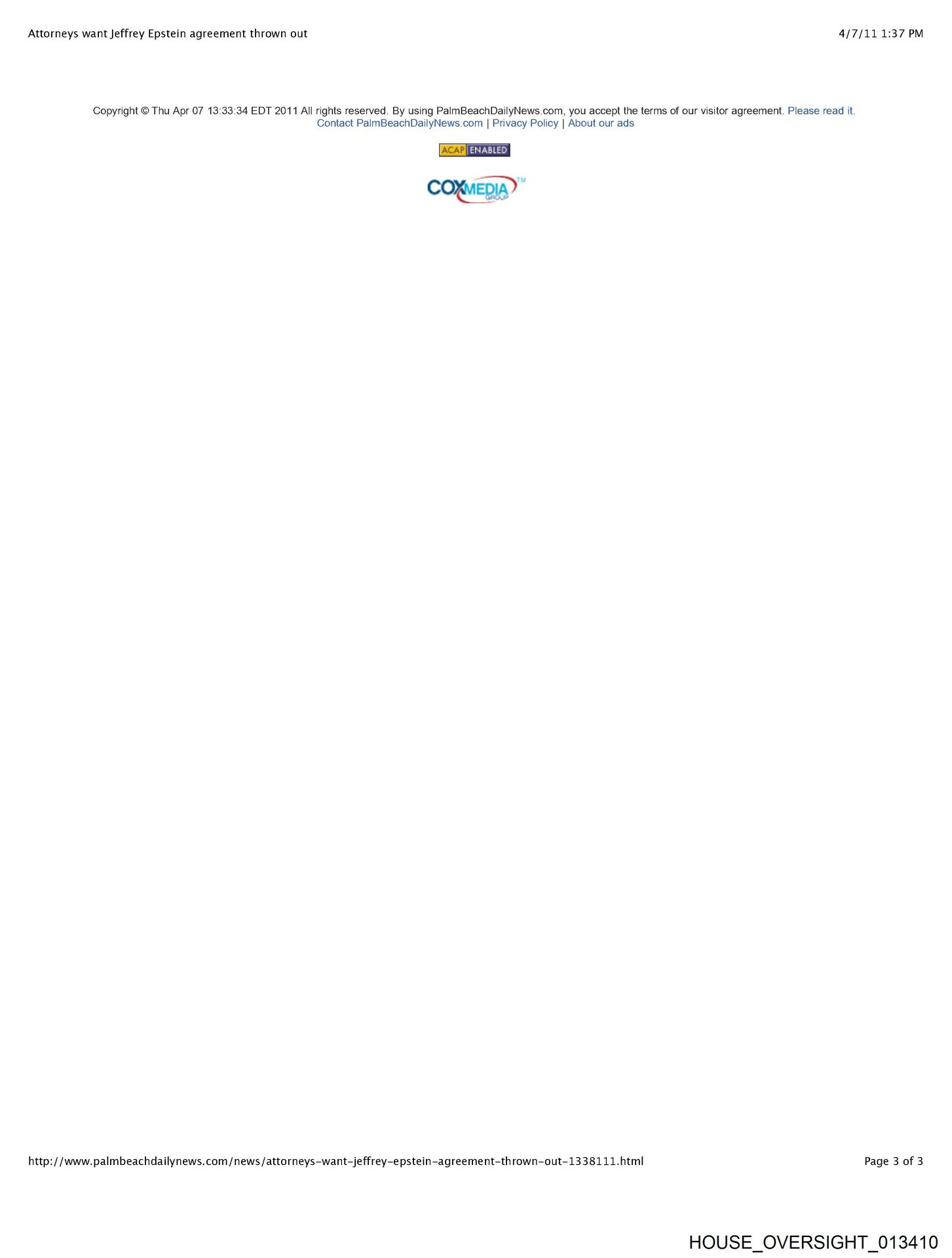 - HOUSE_OVERSIGHT_010585… Jeff Epstein Sued for "Repeated Sexual Assaults" on Teen, New York Post, October. 17, 2007, by Dareh Gregorian, link at: http://www.nypost.com/p/news/regional/item_44z] …