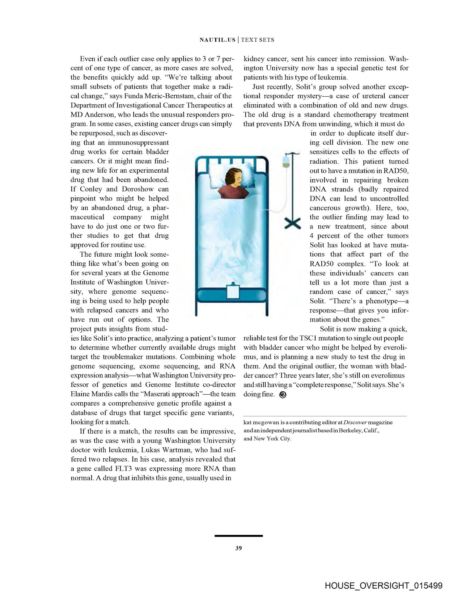 - HOUSE_OVERSIGHT_015499… people Solit. “There’s a phenotype—a with relapsed cancers and who response—that gives you infor- have run out of options. The mation …