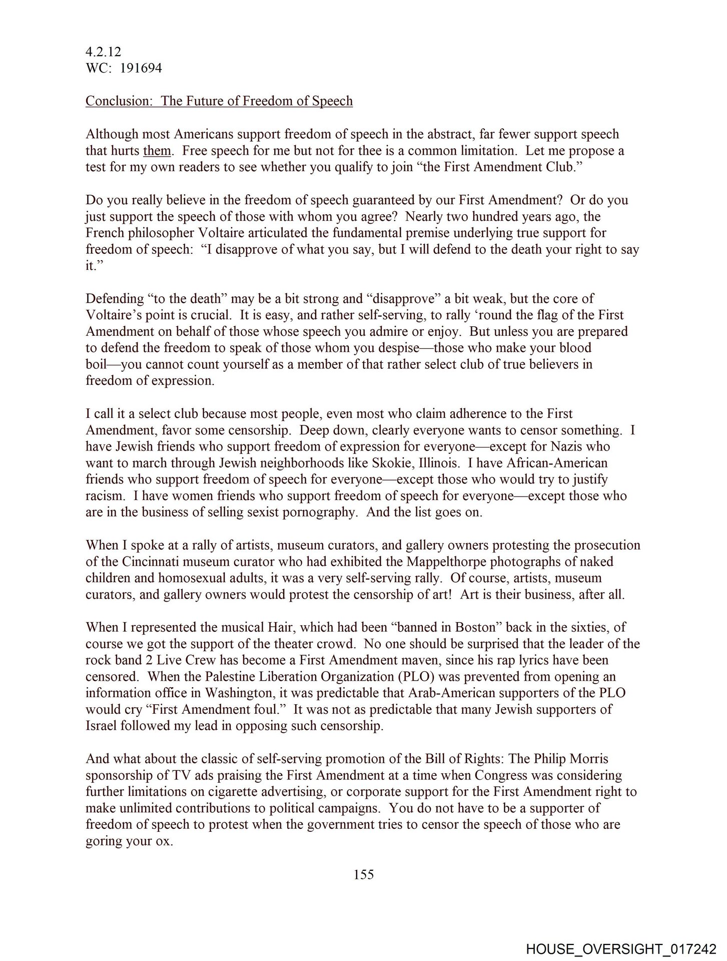 - HOUSE_OVERSIGHT_017242… to defend the freedom to speak of those whom you despise—those who make your blood boil—you cannot count yourself as a …