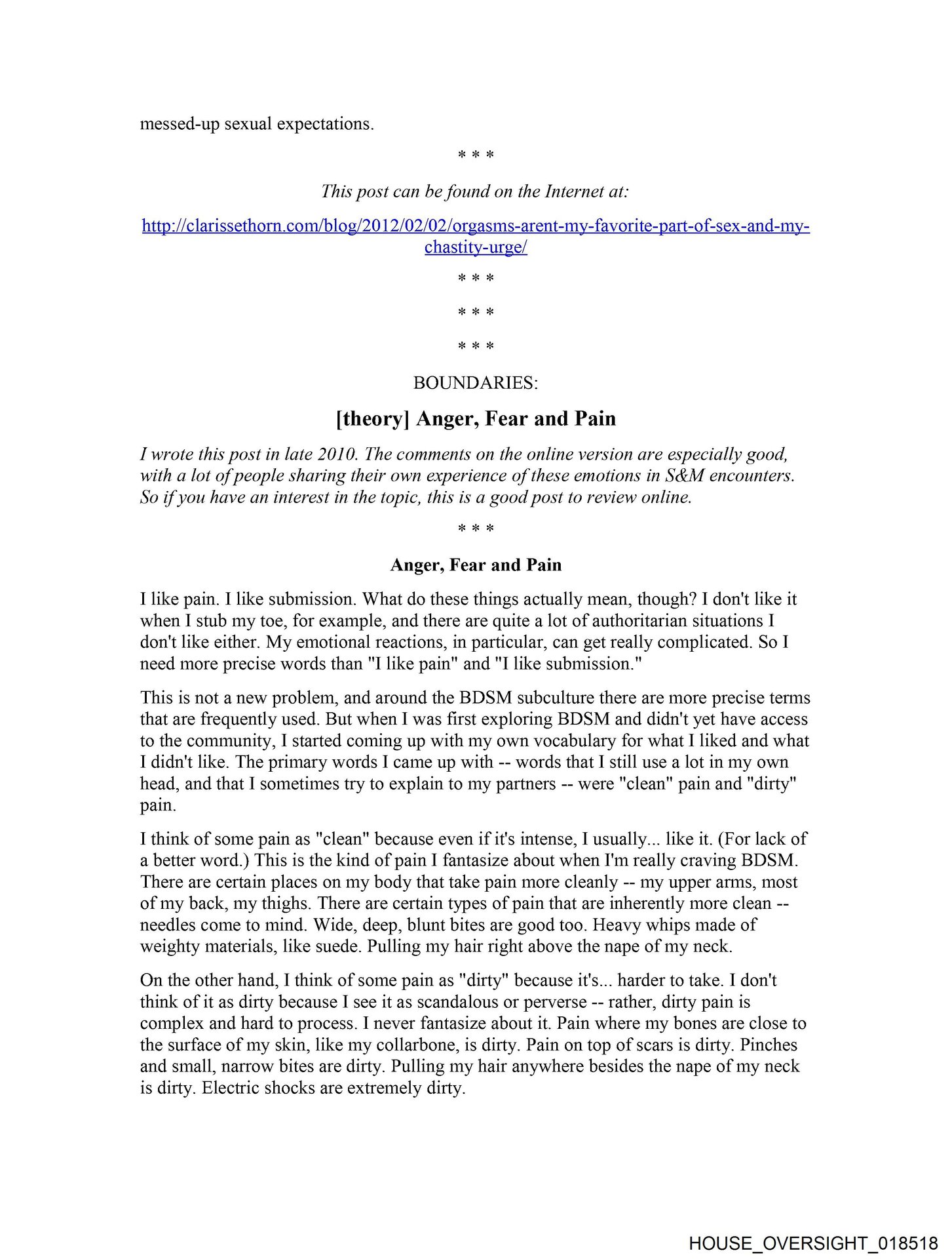 - HOUSE_OVERSIGHT_018518… xR This post can be found on the Internet at: http://clarissethorn.com/blog/2012/02/02/orgasms-arent-my-favorite-part-of-sex-and-my- chastity-urge/ xR xR OK OK BOUNDARIES: [theory] Anger, Fear and …