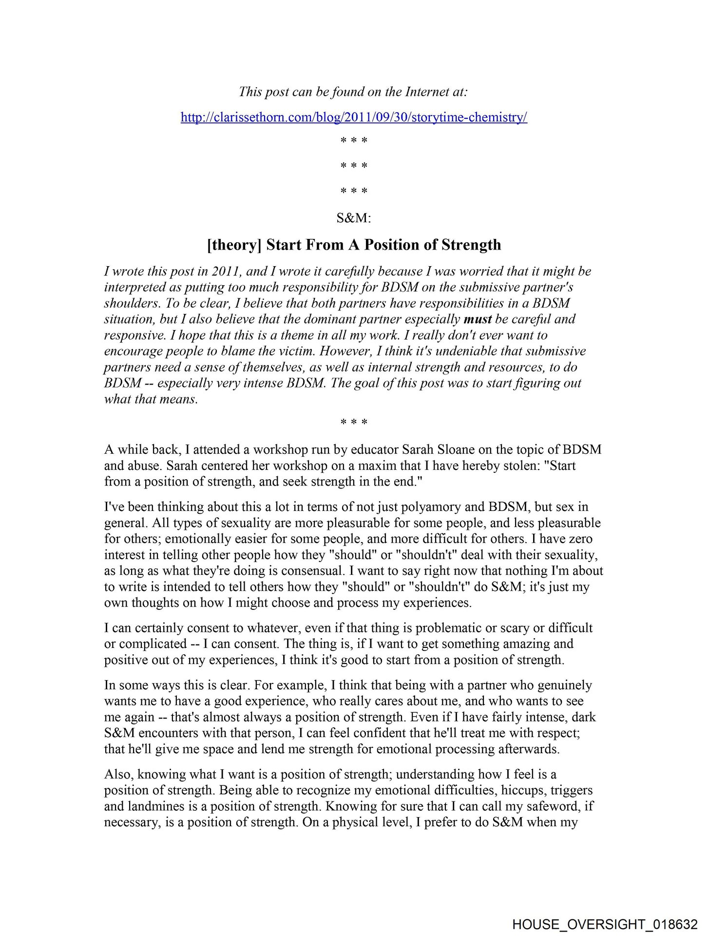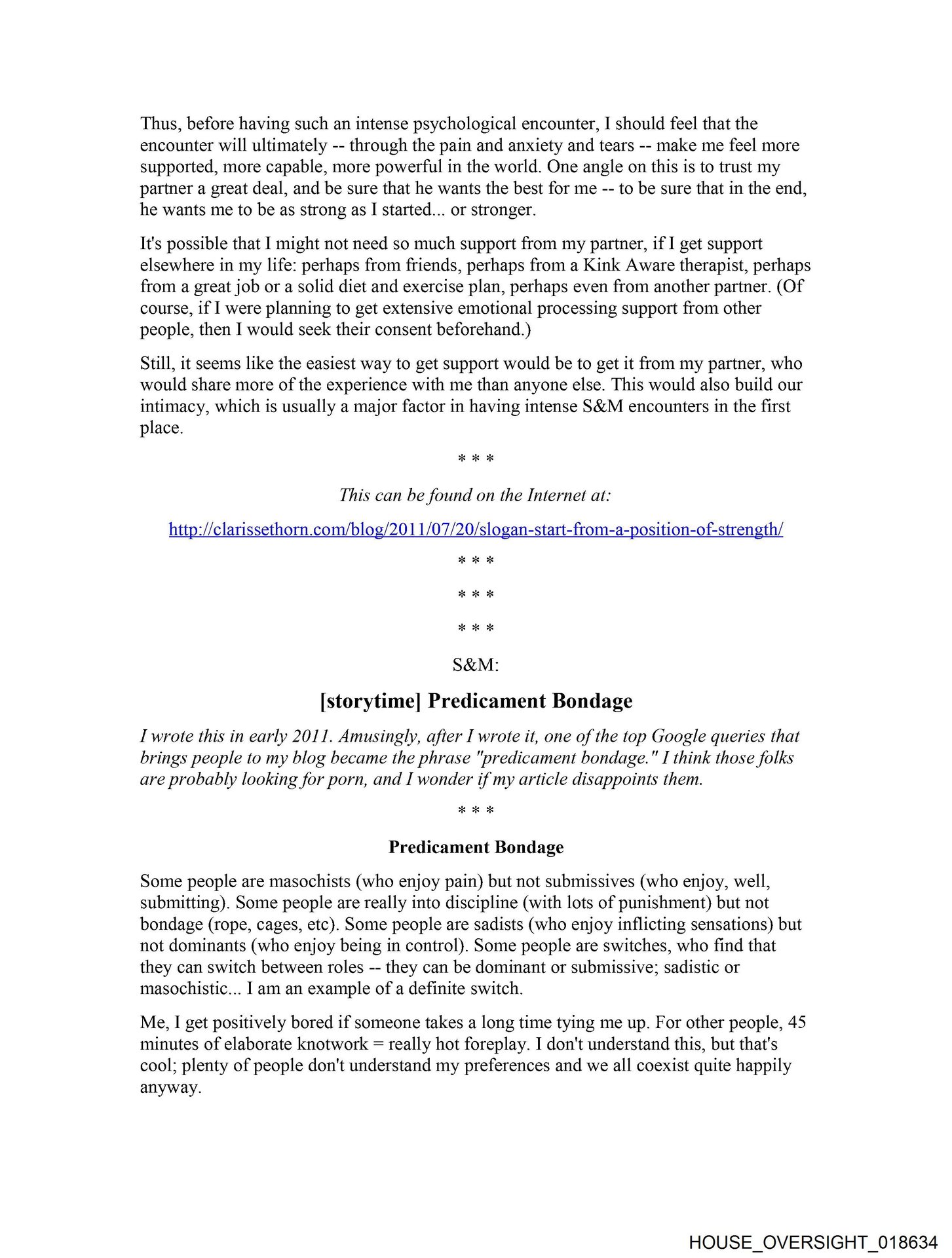 - HOUSE_OVERSIGHT_018490… standard. OK This can be found on the Internet at: http://clarissethorn.com/blog/2011/02/22/ladypornday-bdsm-can-be-love-sex-too/ OR oR KK oh Ok ok S&M: HOUSE_OVERSIGHT_018490