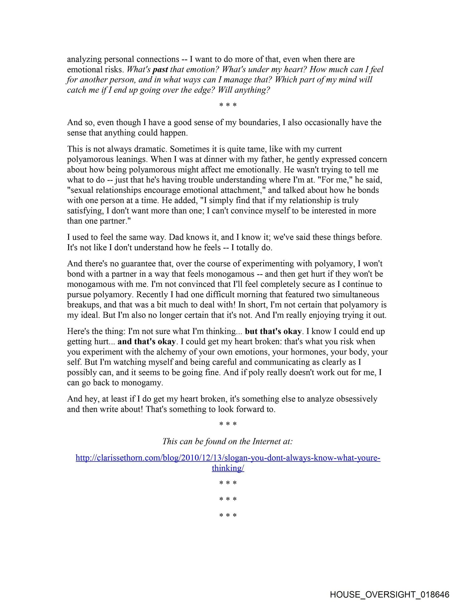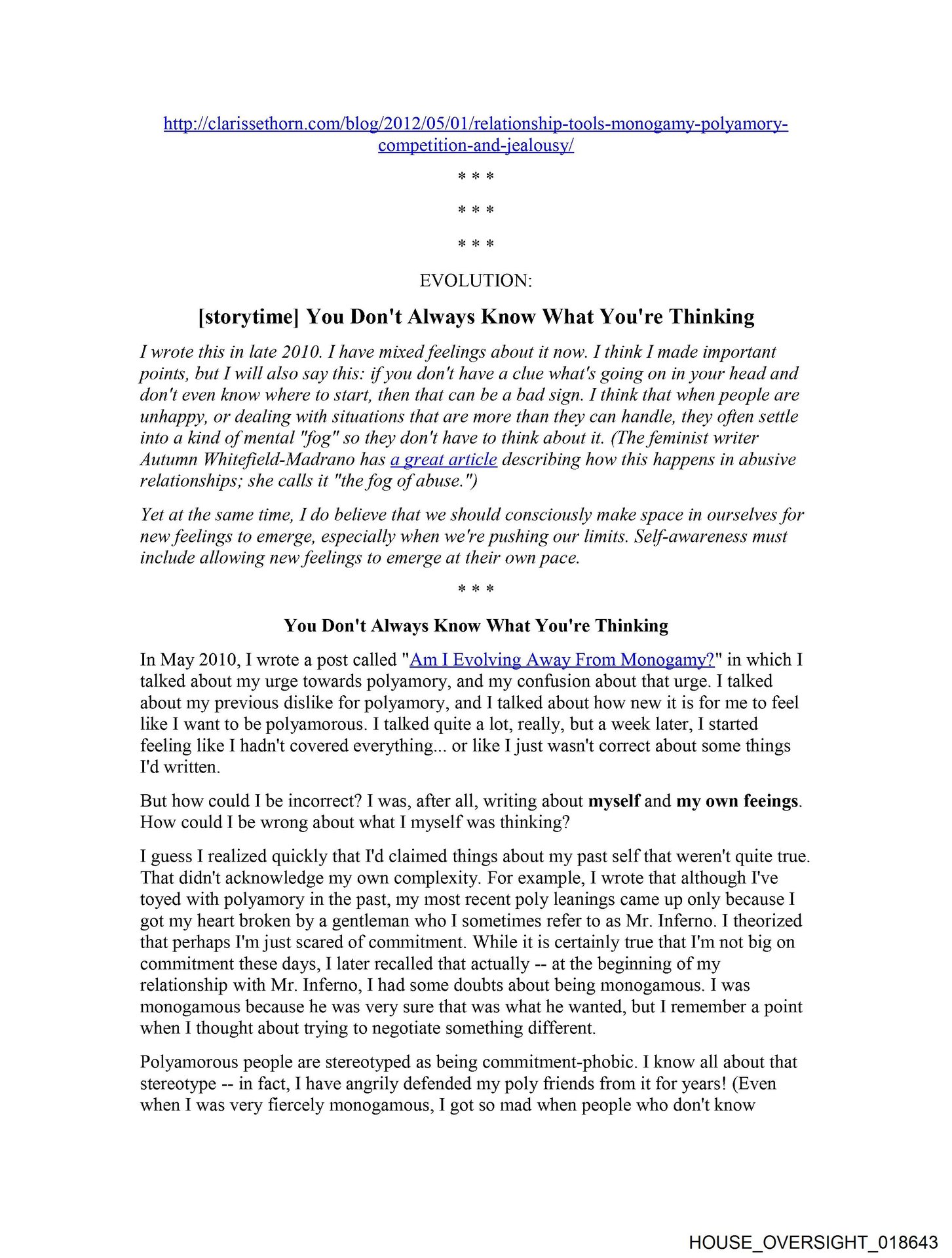 - HOUSE_OVERSIGHT_018696… 2. My old post "Am I Evolving Away From Monogamy?": http://clarissethorn.com/blog/ 2010/05/11/am-i-evolving-away-from-monogamy/ — [back] xR Abuse: Thinking More Clearly About BDSM …