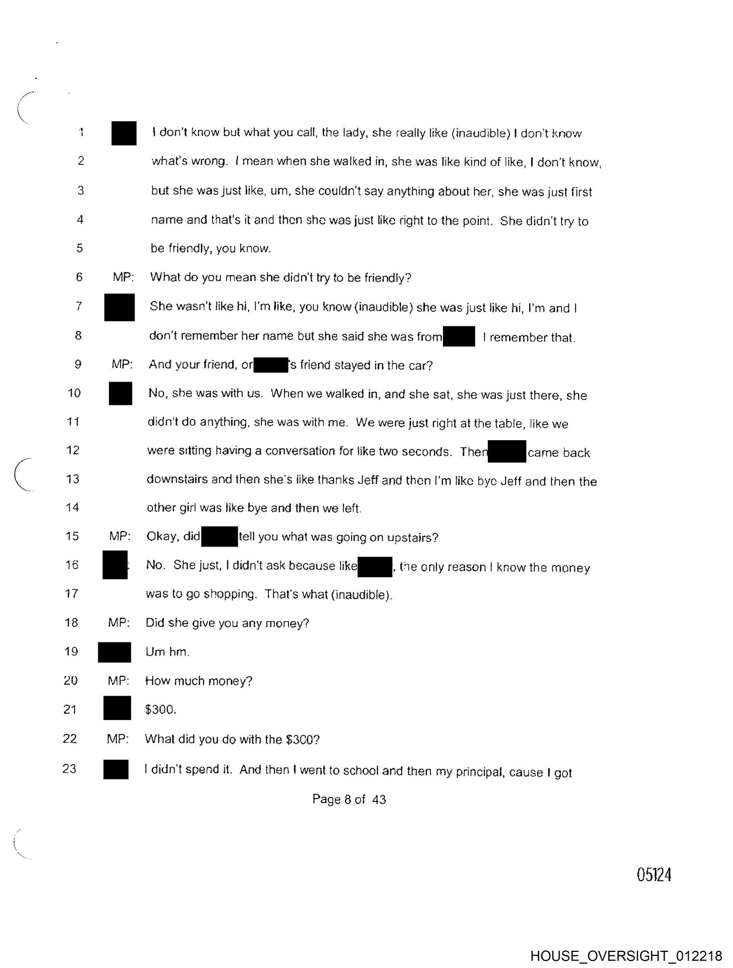 - HOUSE_OVERSIGHT_010513… you tell us why? | A: Well, I felt the handling- | way the state attorney's of : unusual. I knew …