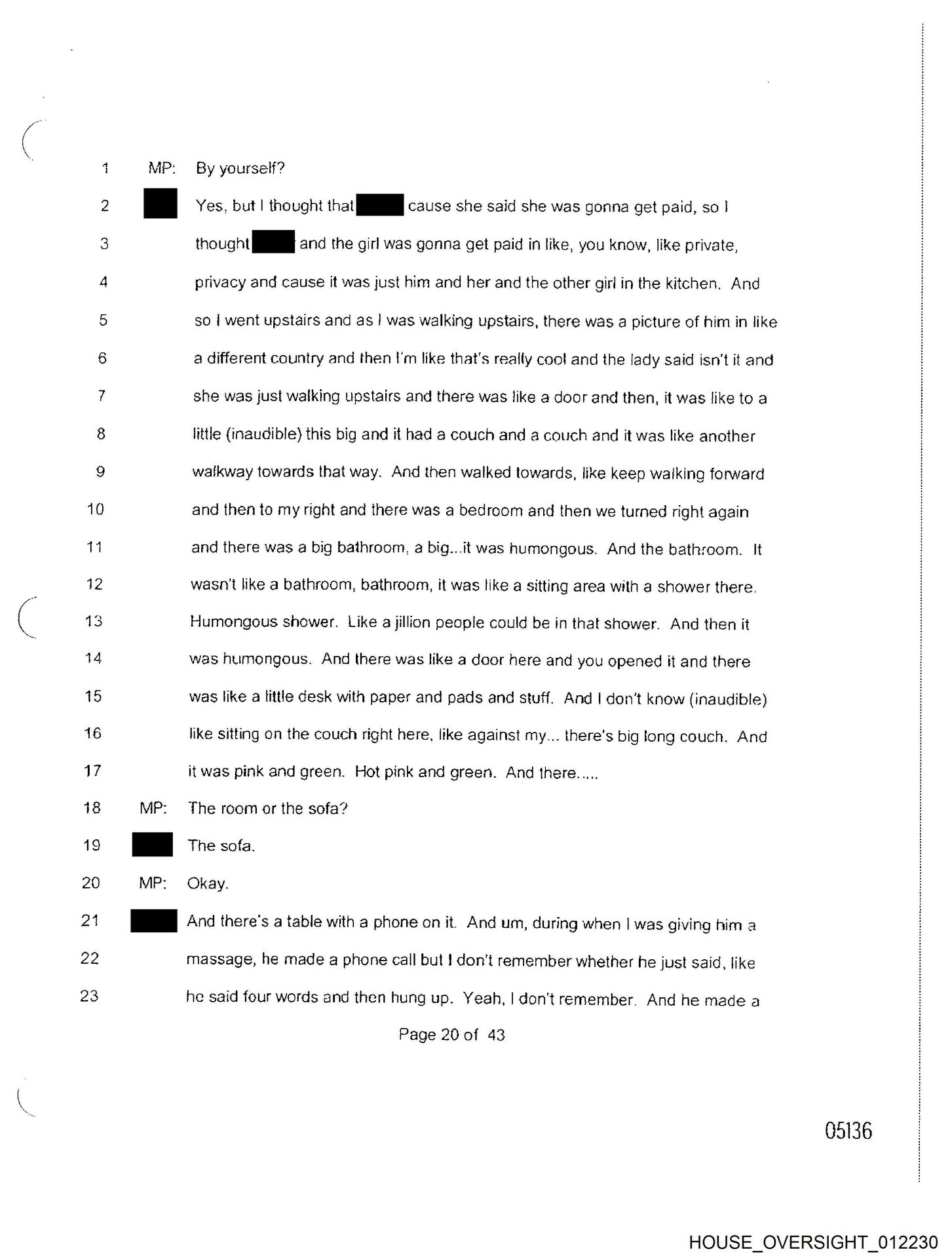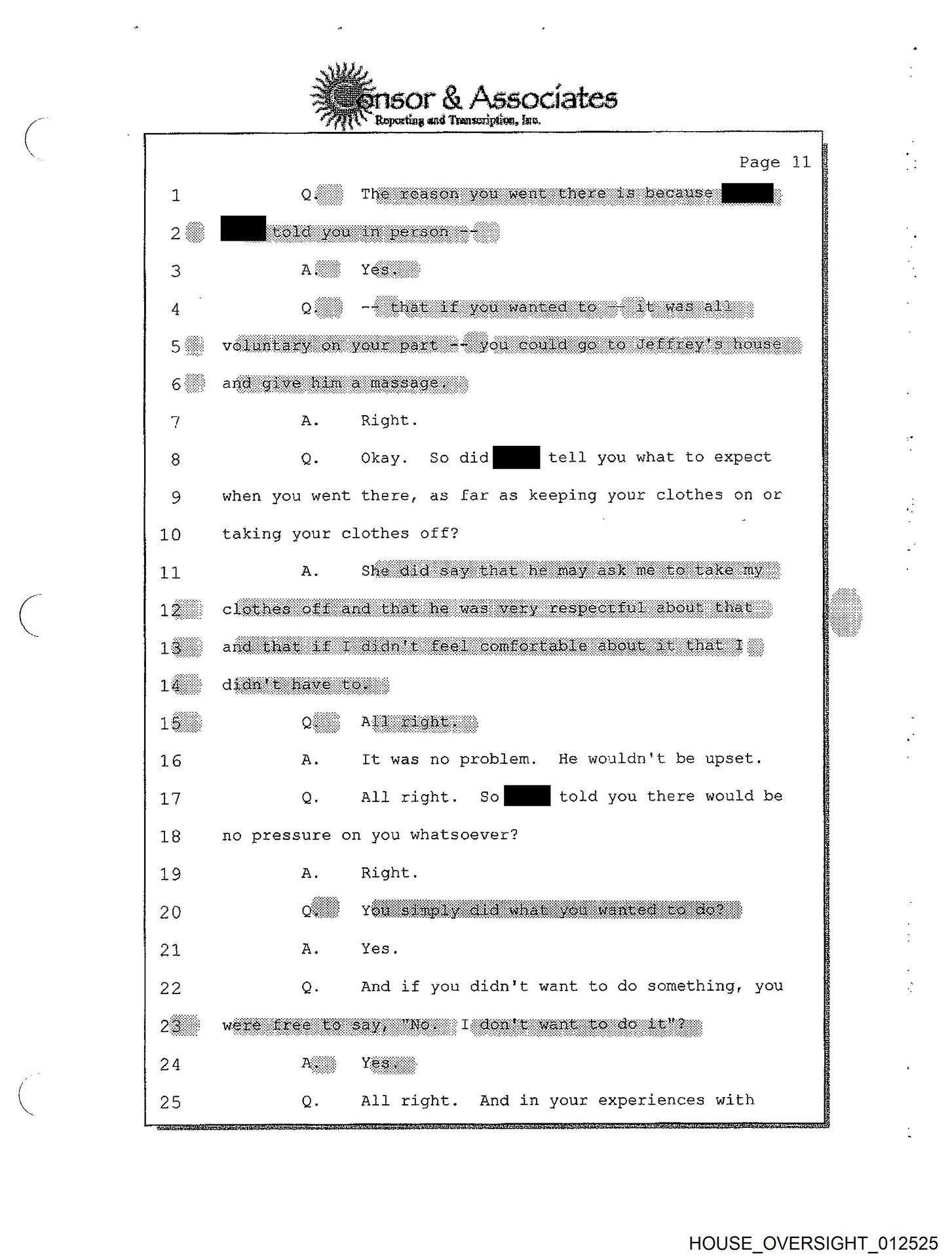 - HOUSE_OVERSIGHT_010503… girls she'd | seen at his house were very thin and beautiful and did not have ; tattoos. This massage therapist …
