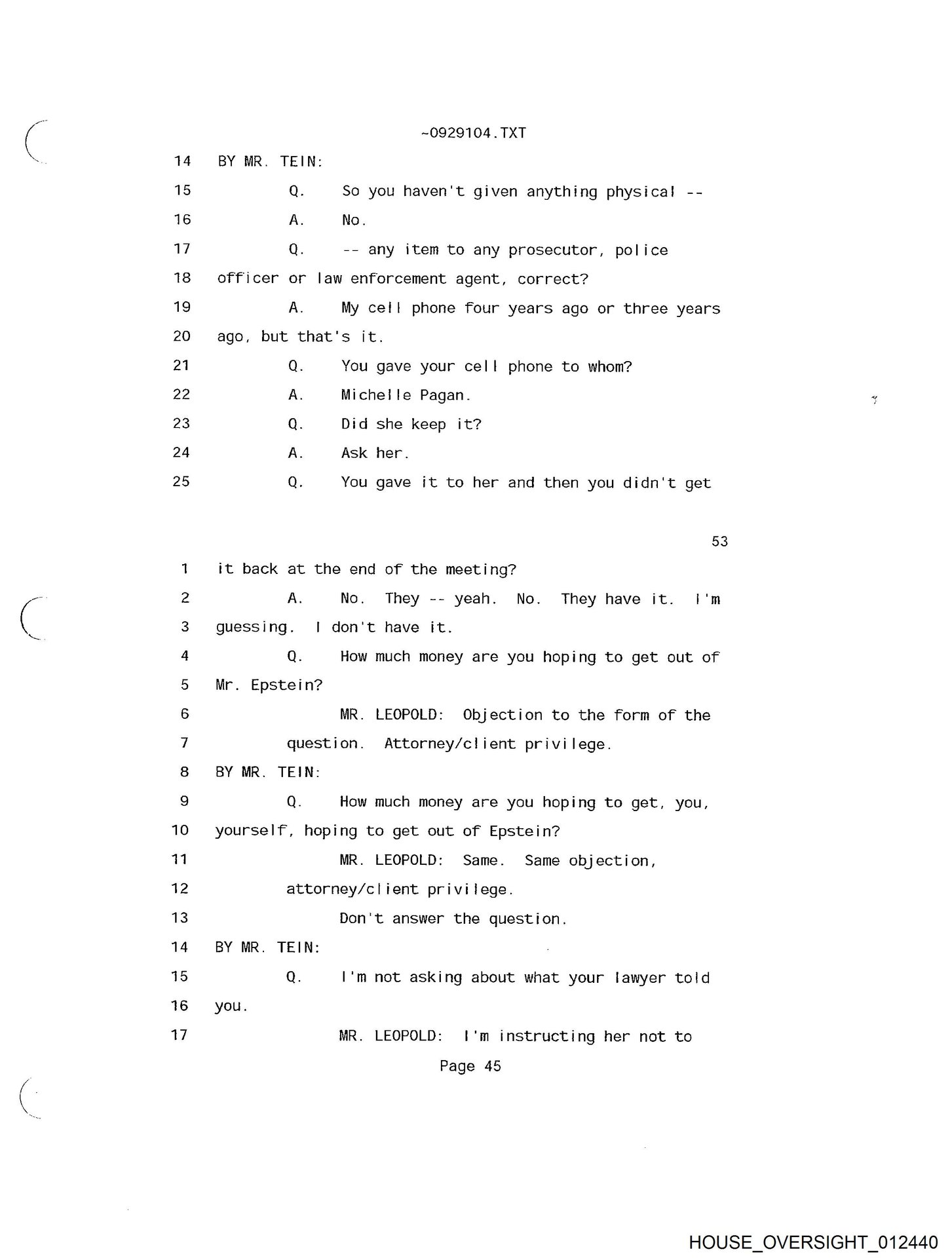 - HOUSE_OVERSIGHT_010510… offer made as to one vic- ] cell phone rang and went to ice mail and played the mes- | CHAPTER …