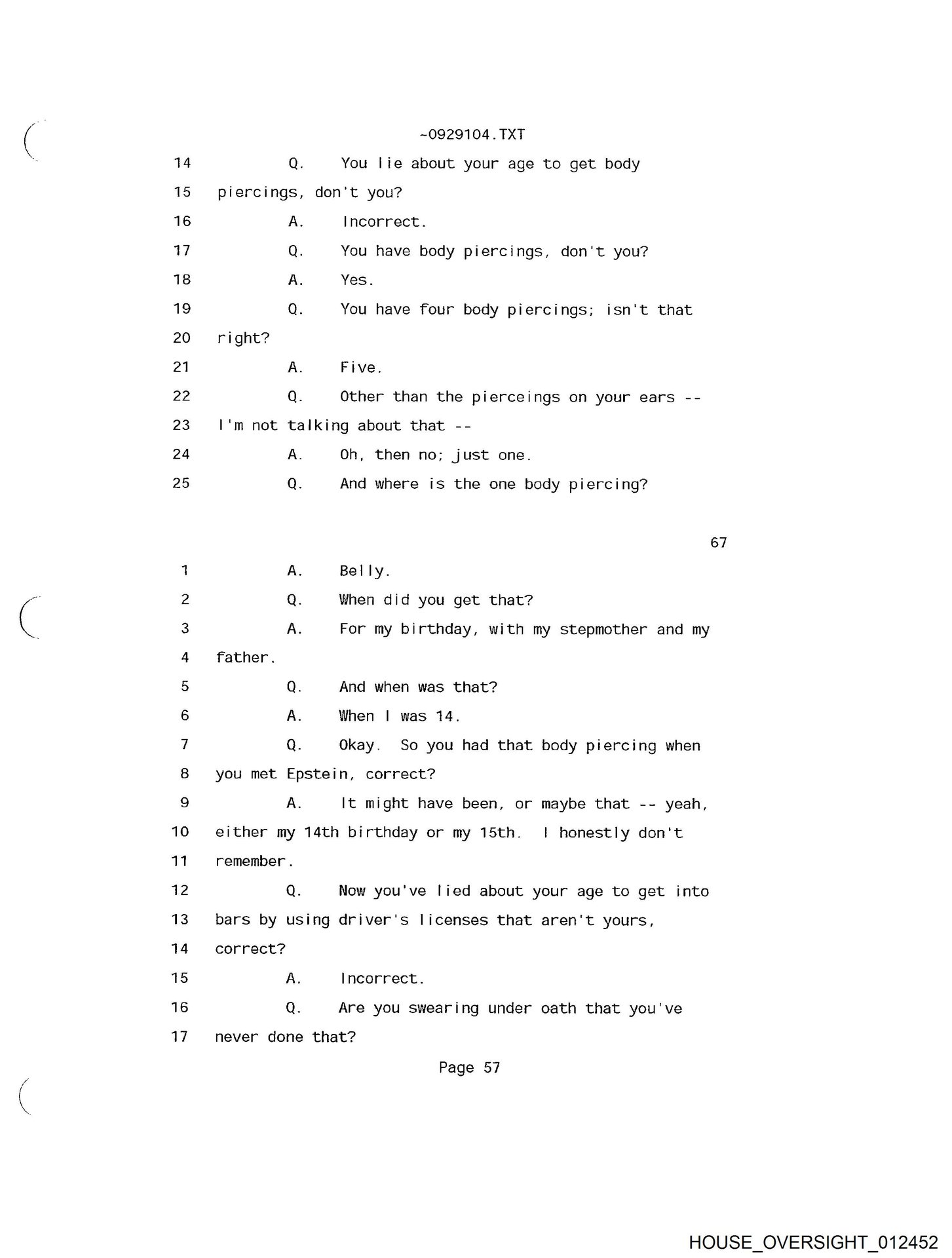 - HOUSE_OVERSIGHT_018492… be female in our society and not daydream about having cheekbones that can stab people), but it has been worth it. …