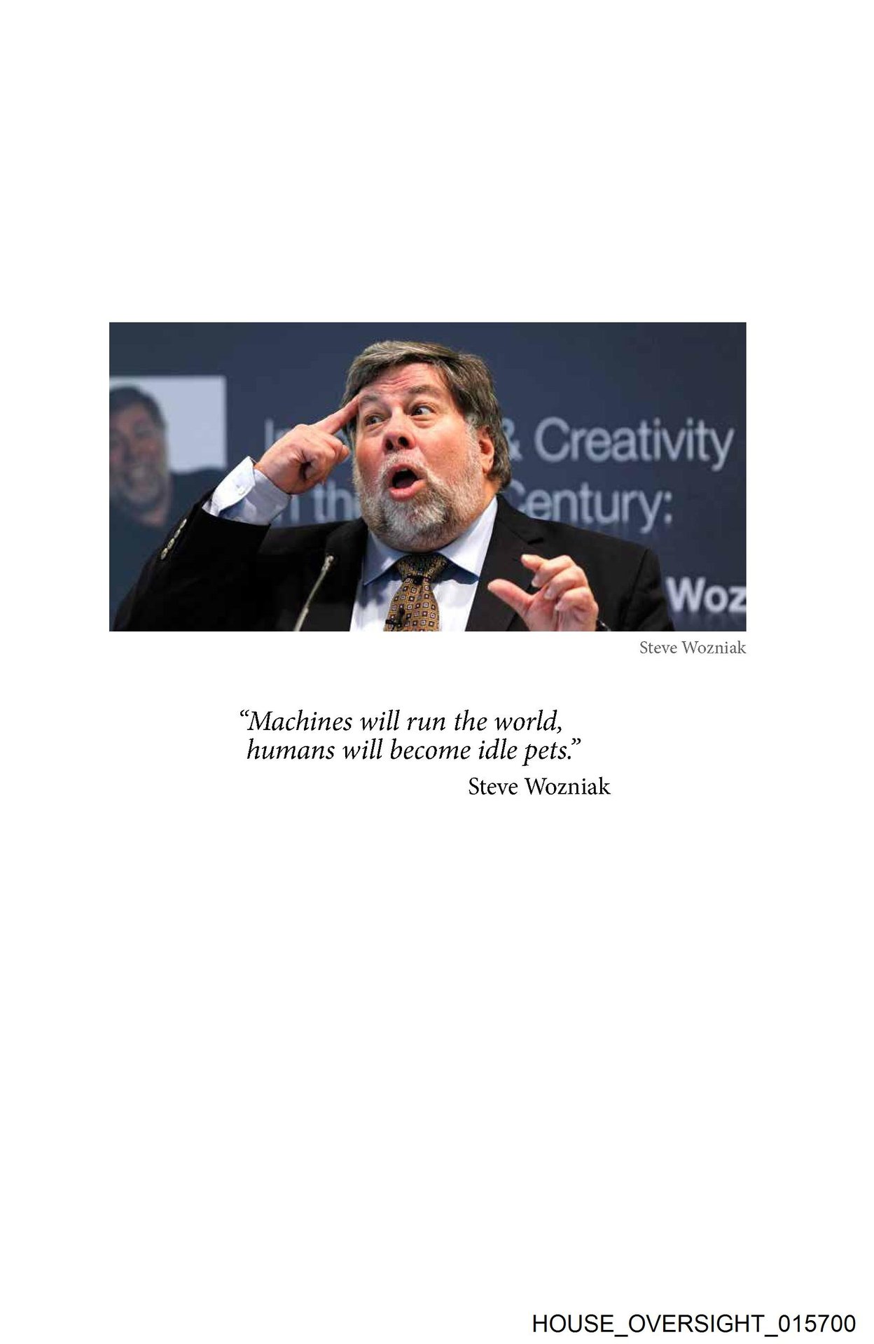 - HOUSE_OVERSIGHT_015700Steve Wozniak “Machines will run the world, humans will become idle …