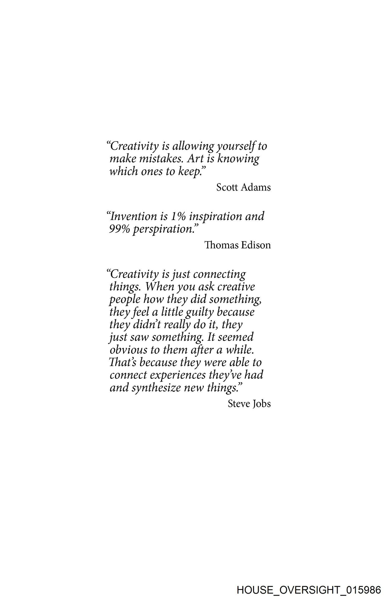 - HOUSE_OVERSIGHT_015986… able to connect experiences they've had and synthesize new things.” Steve Jobs HOUSE_OVERSIGHT_015986