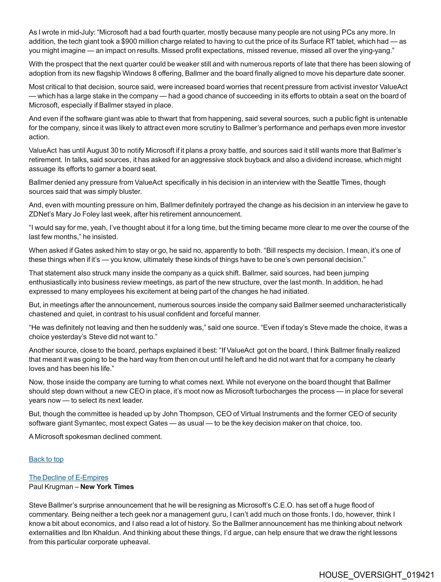 - HOUSE_OVERSIGHT_030235… . Attachments: image007.jpg Importance: High From Stevie. —–Original Message—– From: Steven Sinofsky To: 'Melanie Walker' < Sent: Sat, Jul 16, 2011 …