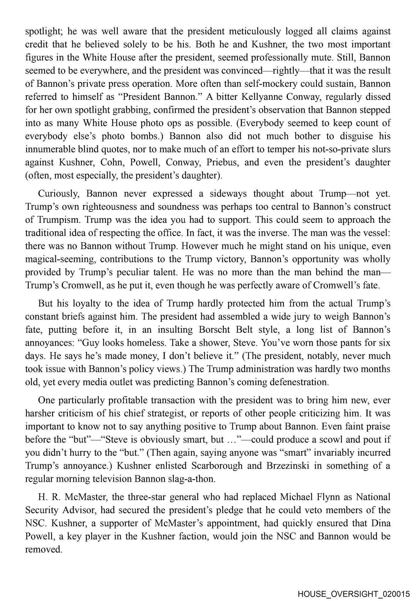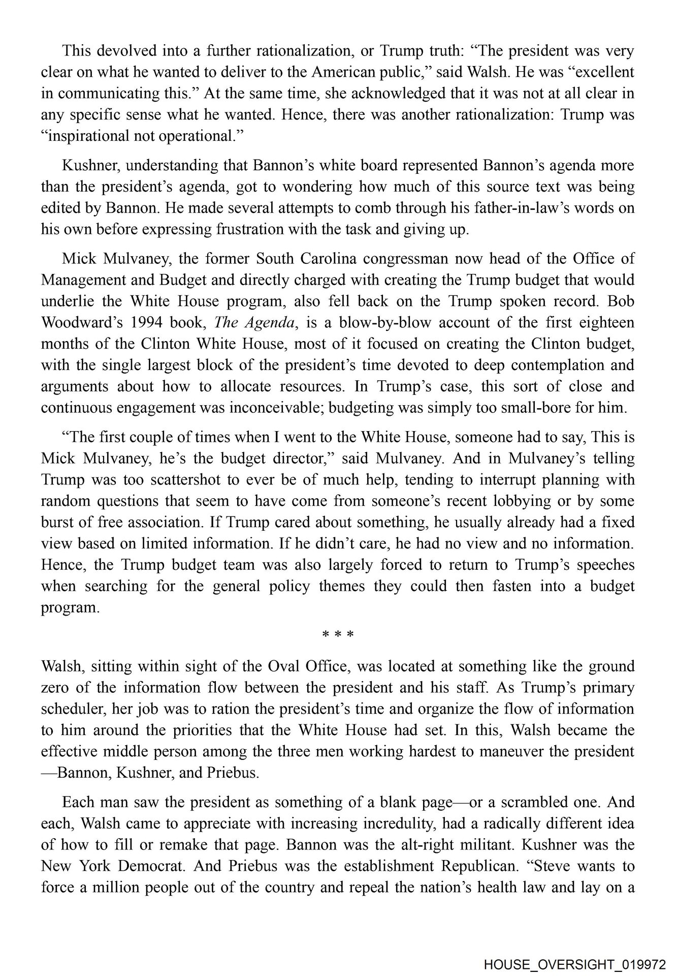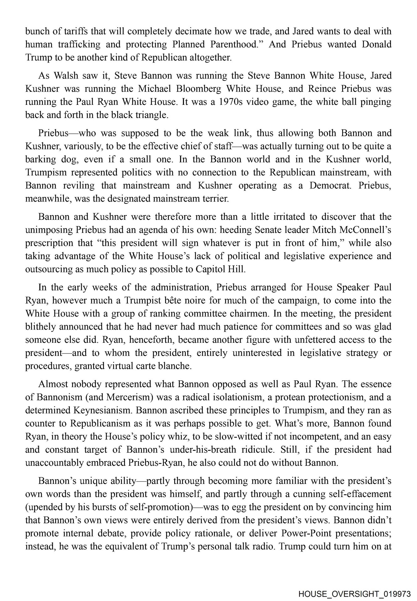 - HOUSE_OVERSIGHT_030870… questions to his son-in-law, Jared Kushner, or to chief strategist Steve Bannon or House Speaker Paul Ryan, the website reported. Those …