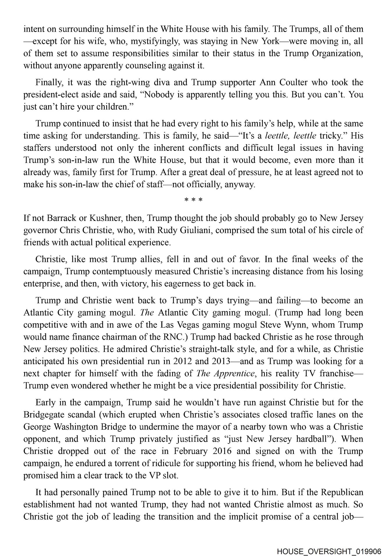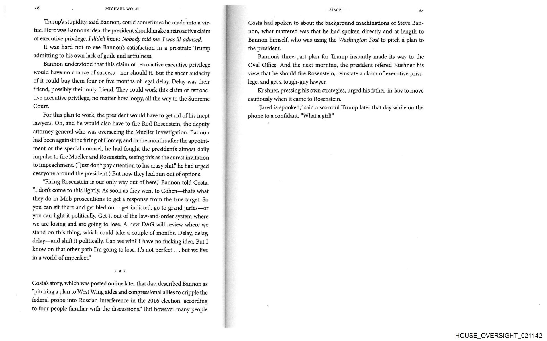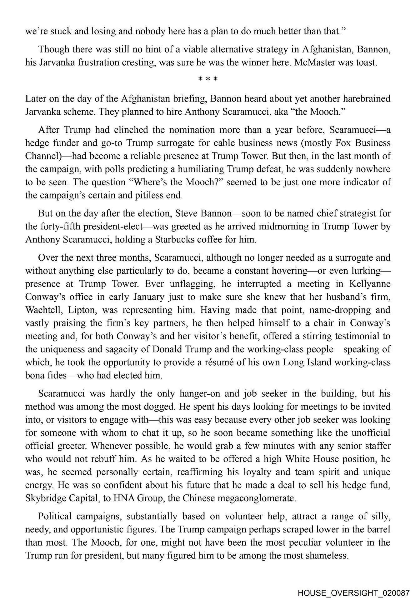 - HOUSE_OVERSIGHT_030870… questions to his son-in-law, Jared Kushner, or to chief strategist Steve Bannon or House Speaker Paul Ryan, the website reported. Those …