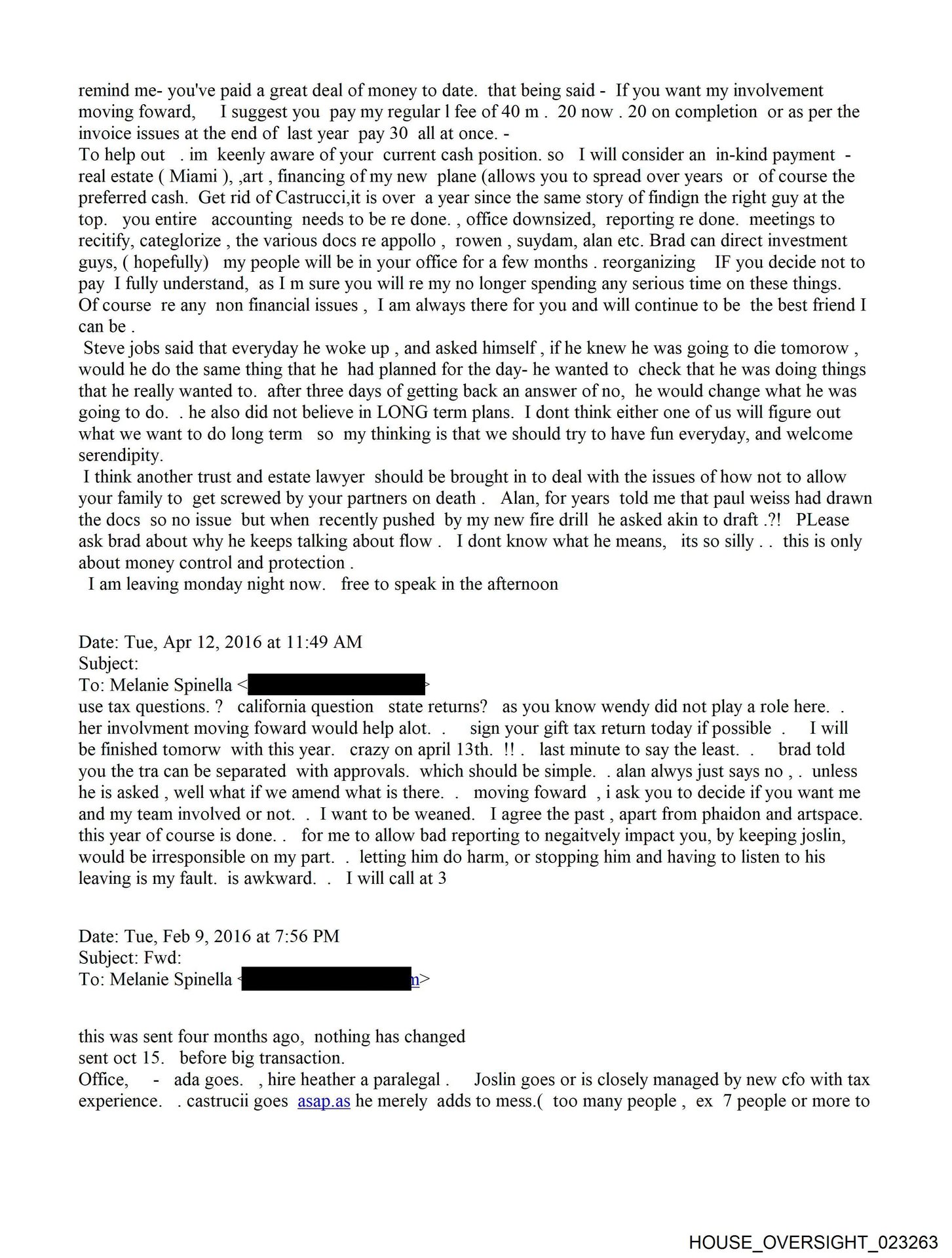 - HOUSE_OVERSIGHT_030892… emails that you are better off to contact her directly. Steve will know many interesting people in Paris. He has great …