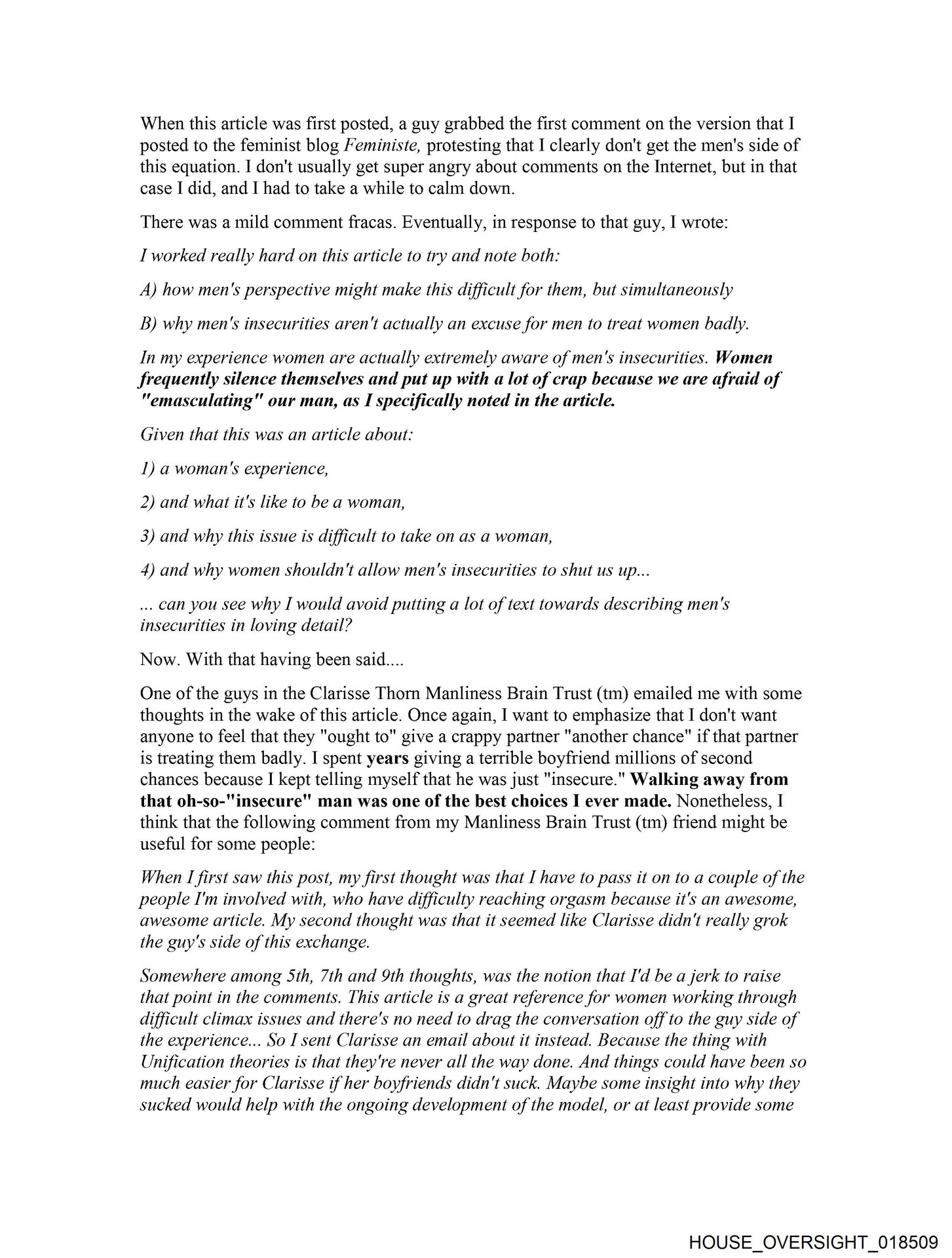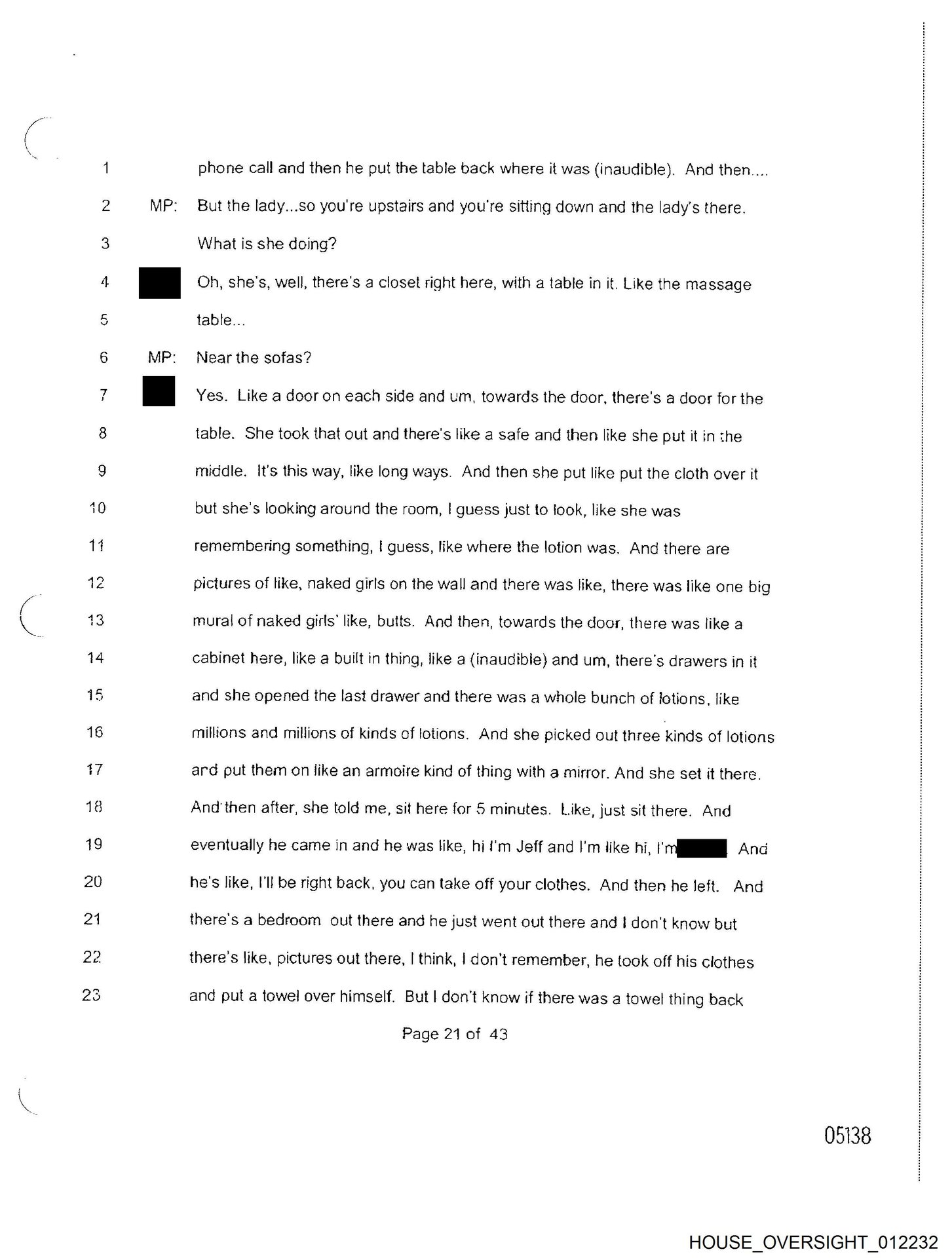 - HOUSE_OVERSIGHT_010568… fingered by him, having him use a vibrator on [me], grabbing my nipples, smelling my butt, jerking off in front of …