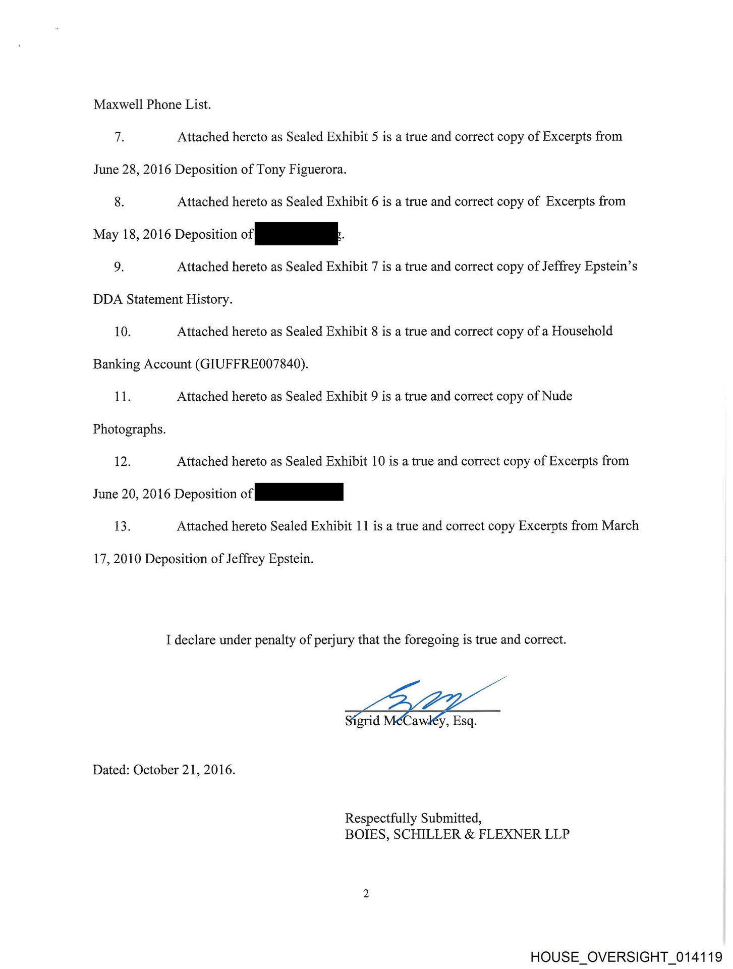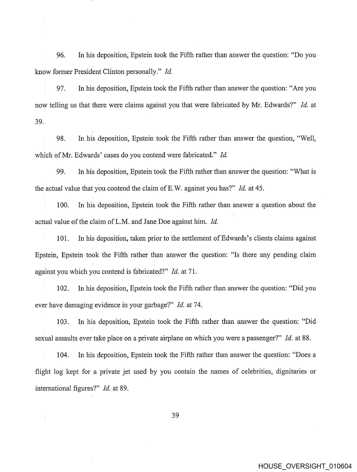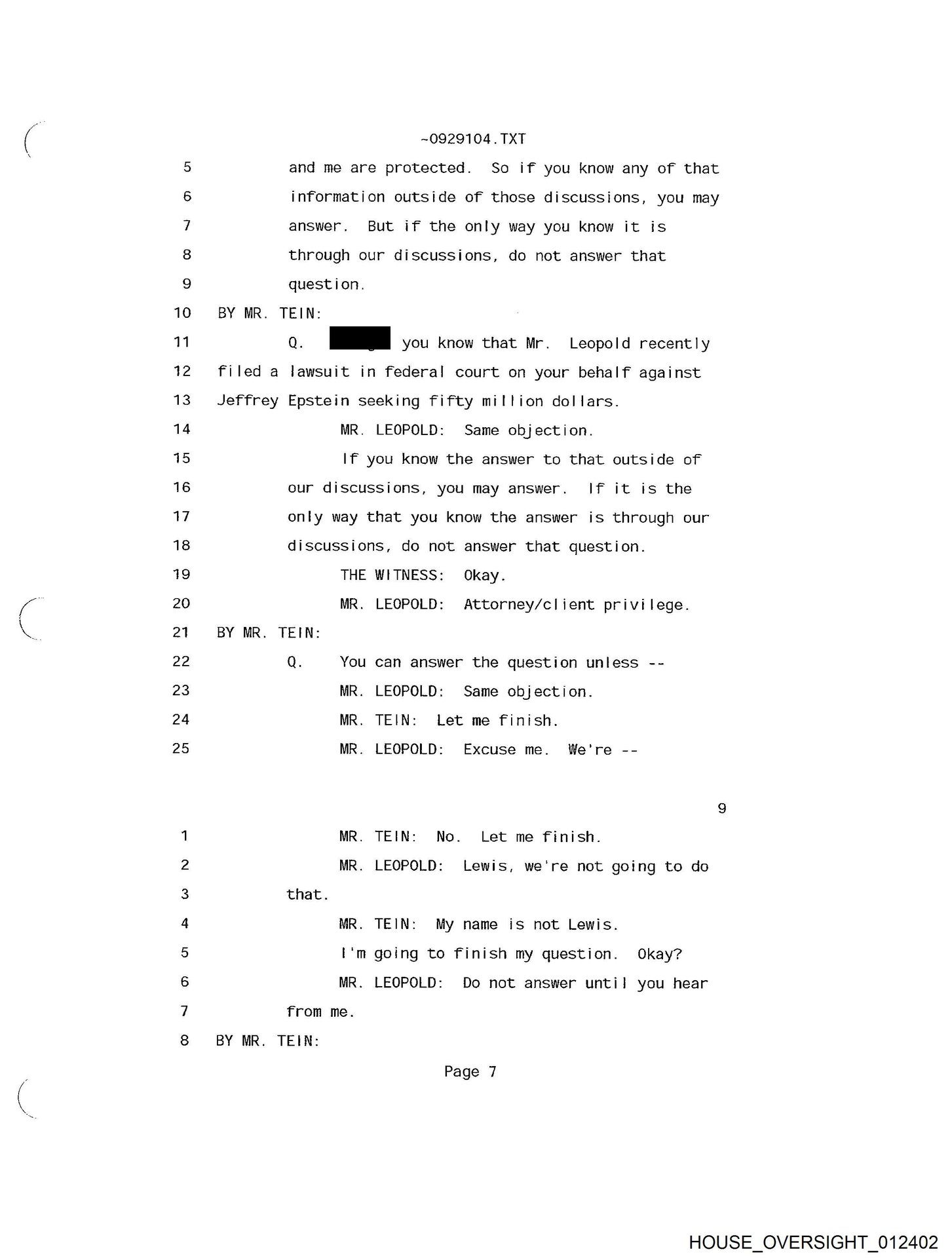 - HOUSE_OVERSIGHT_010586… 1, 6 and 7. 55. During these depositions, Epstein further attempted to obstruct legitimate questioning by inserting a variety of irrelevant …