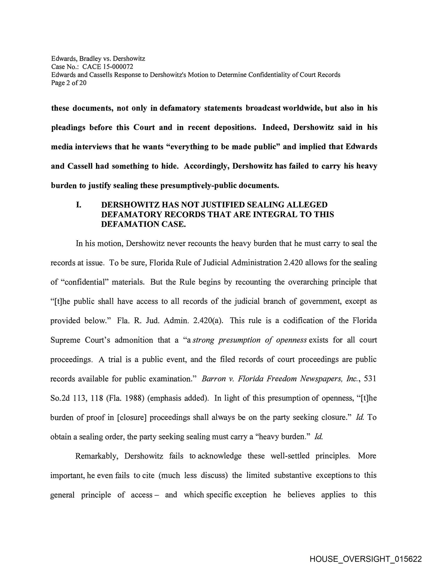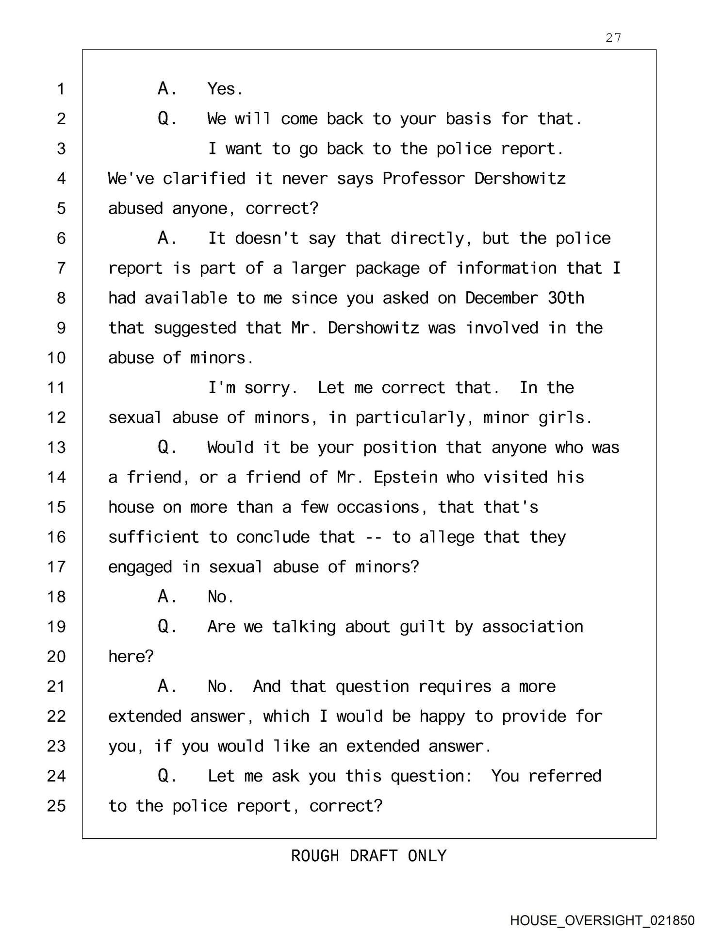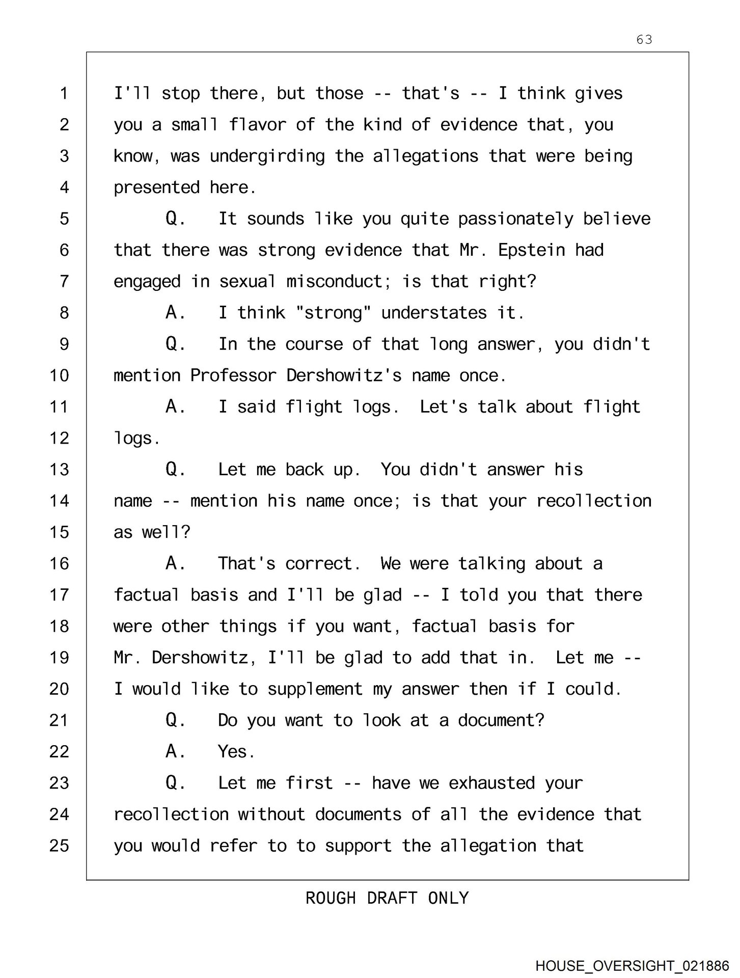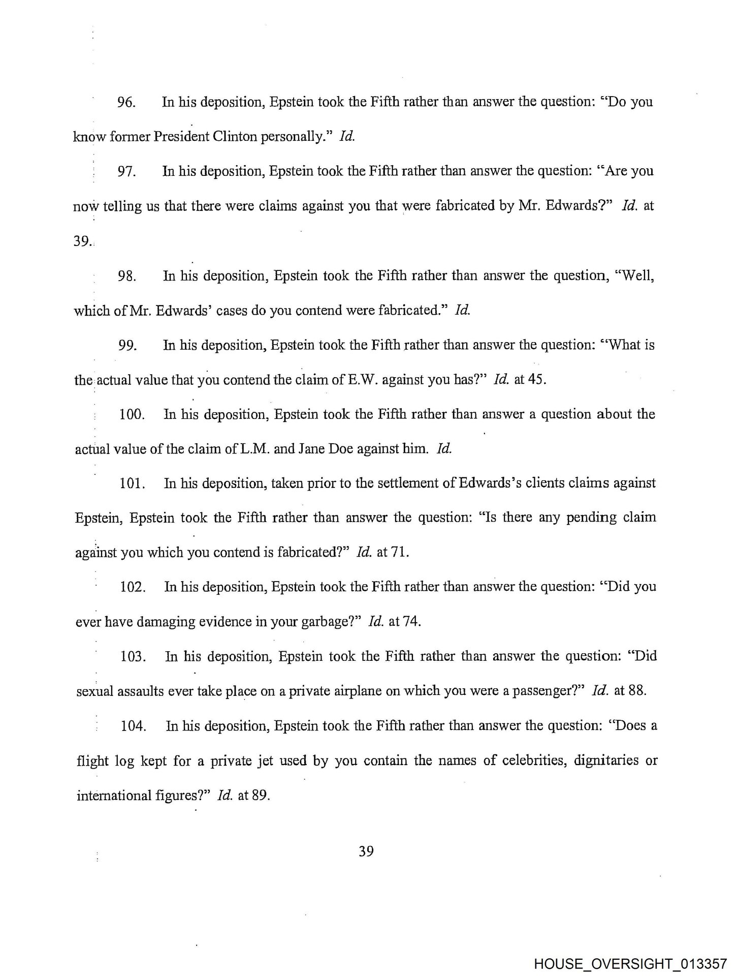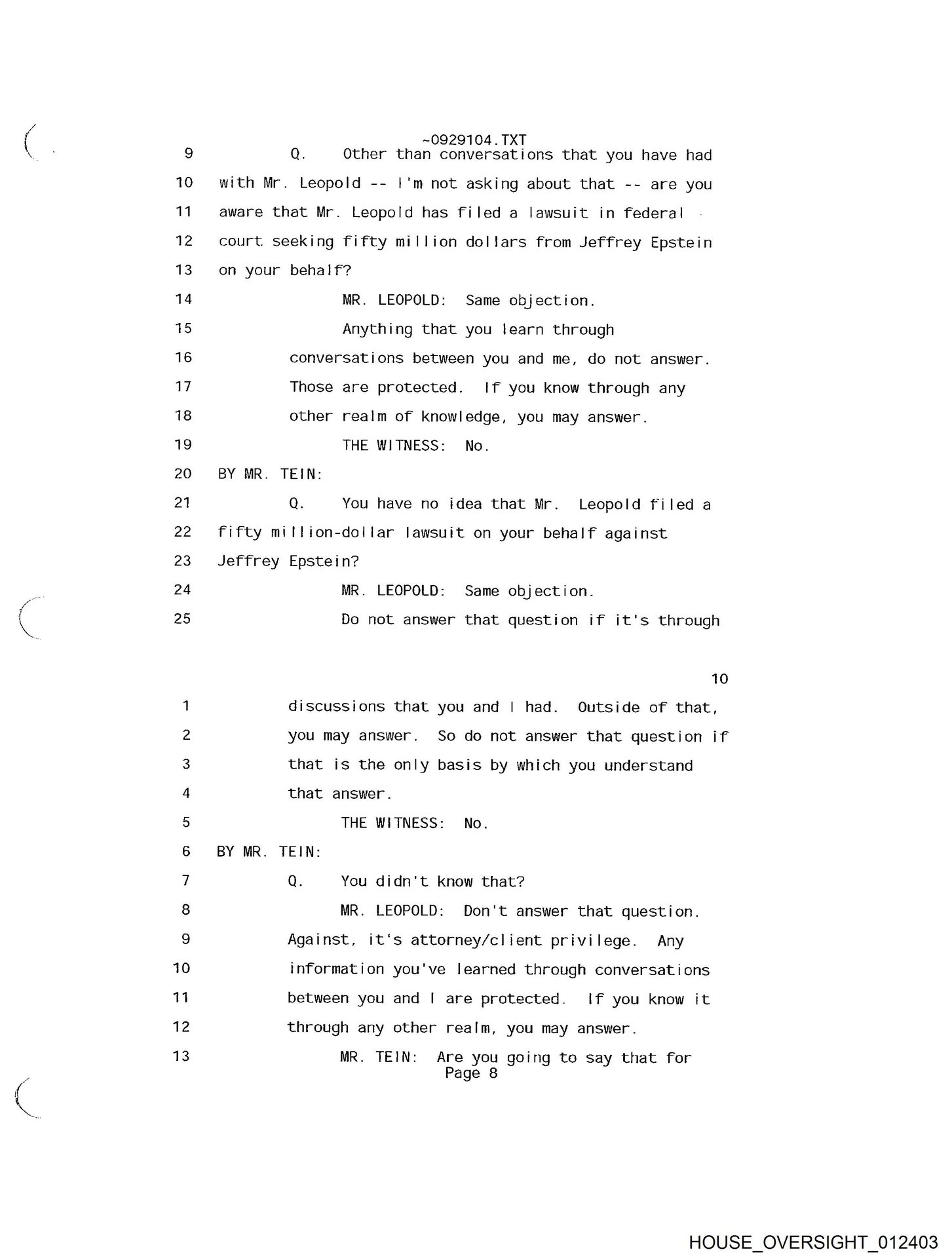- HOUSE_OVERSIGHT_010587… Epstein’s deposition, he only asked reasonable questions, all of which related to the merits of the cases against Epstein. All depositions …