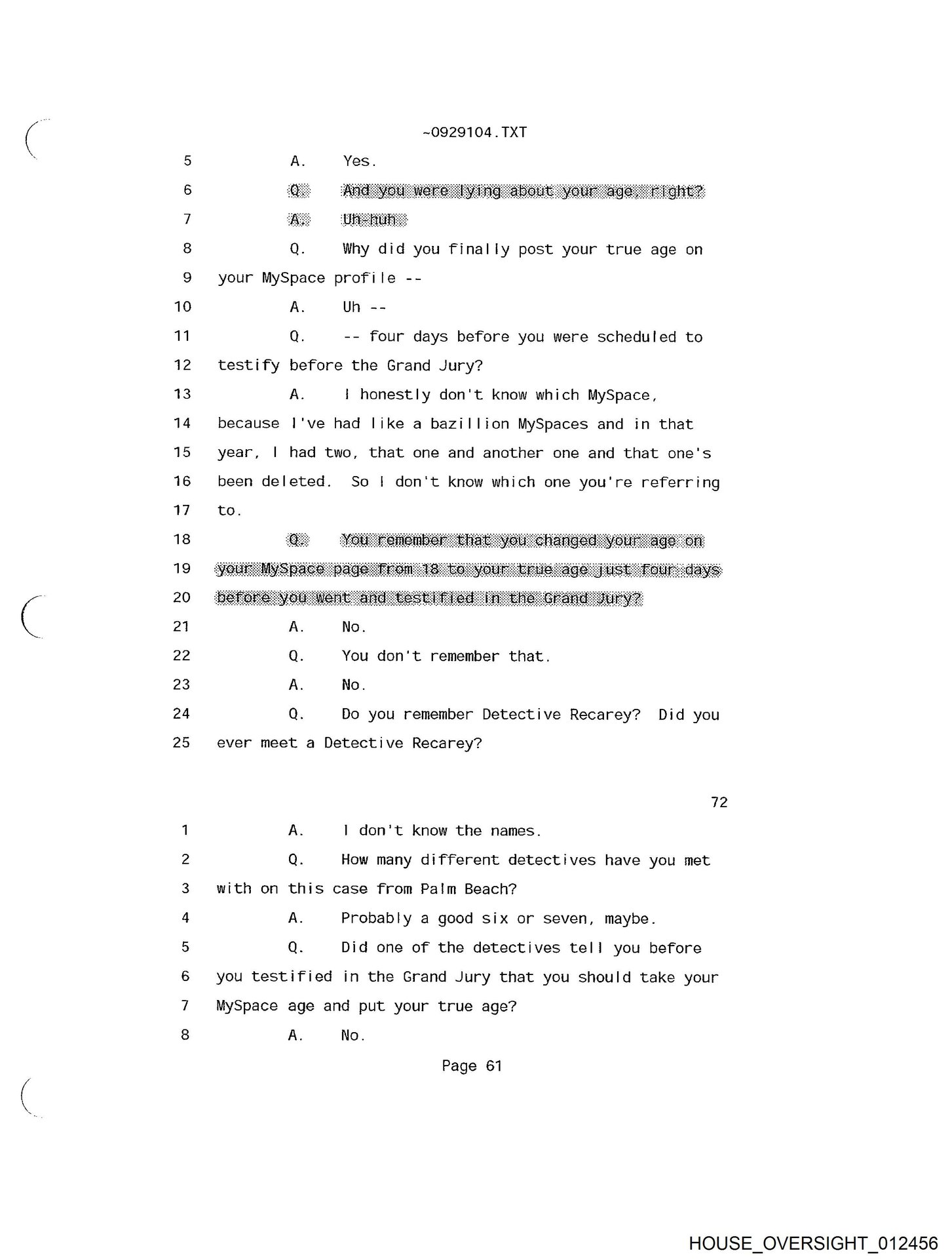 - HOUSE_OVERSIGHT_010512TERSON yur virginity”: “I already lost it. ith drugs and arrested. aught wit w an. 42>, TOWN OF PALM BEACH ps …