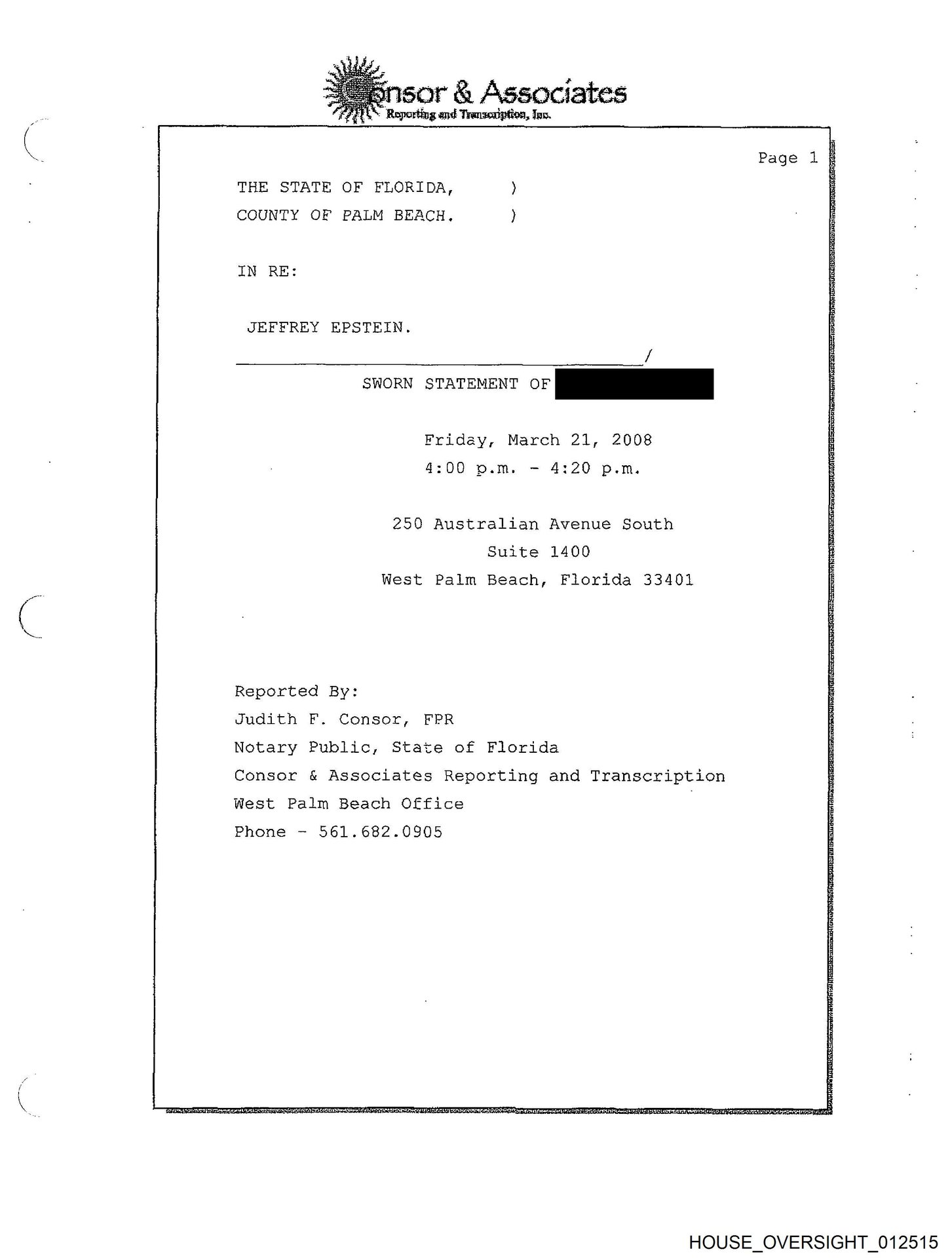 - HOUSE_OVERSIGHT_010515… Epstein became aware of the 1 investigation and his lawyers contacted the state attorney's : office, they told me that. : …